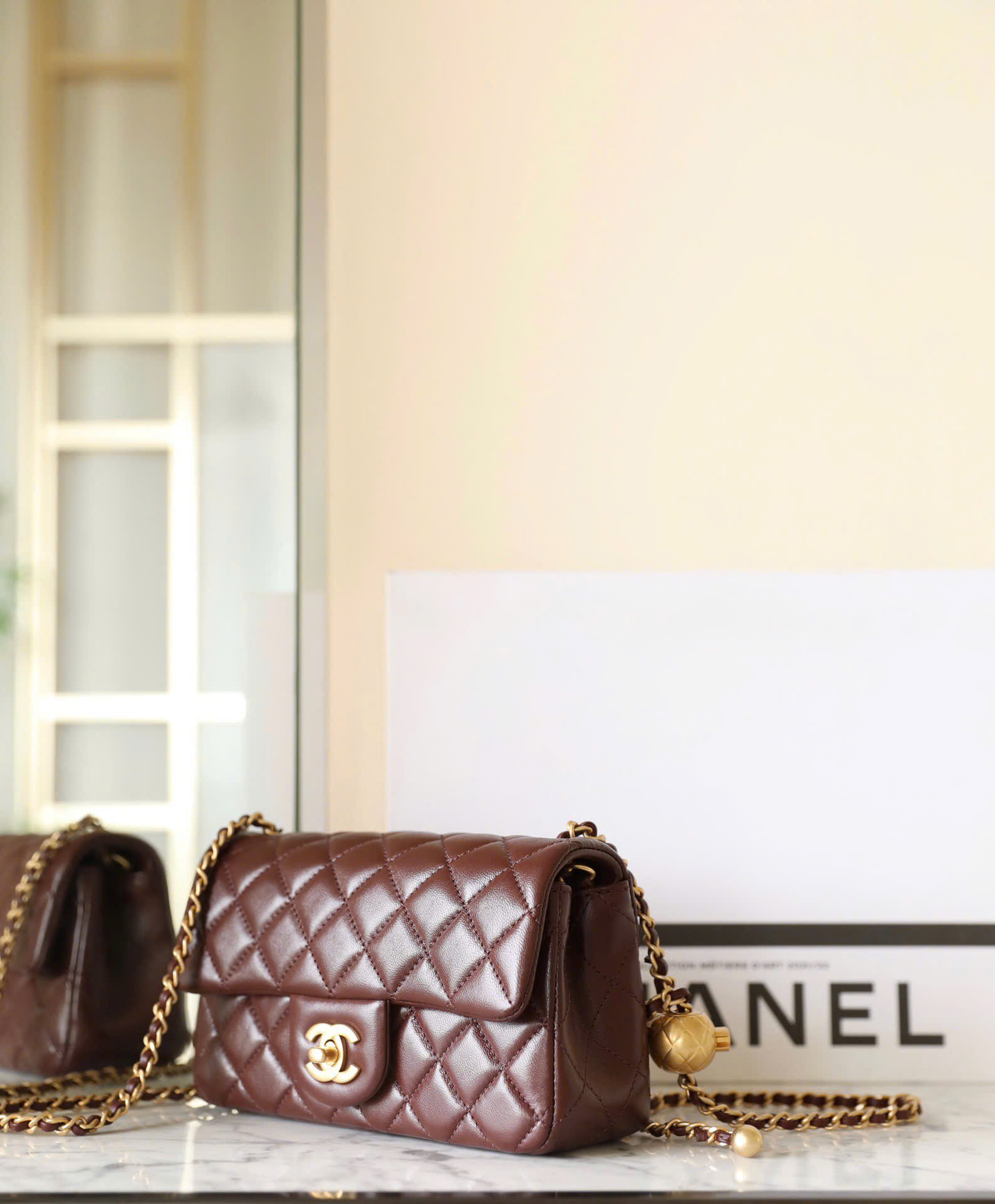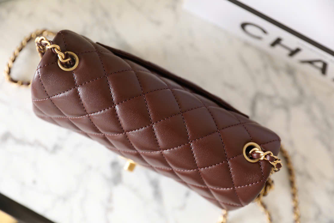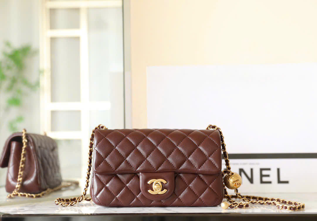 Túi xách Chanel Mini Flap Gold Ball Nâu Đậm Like Auth