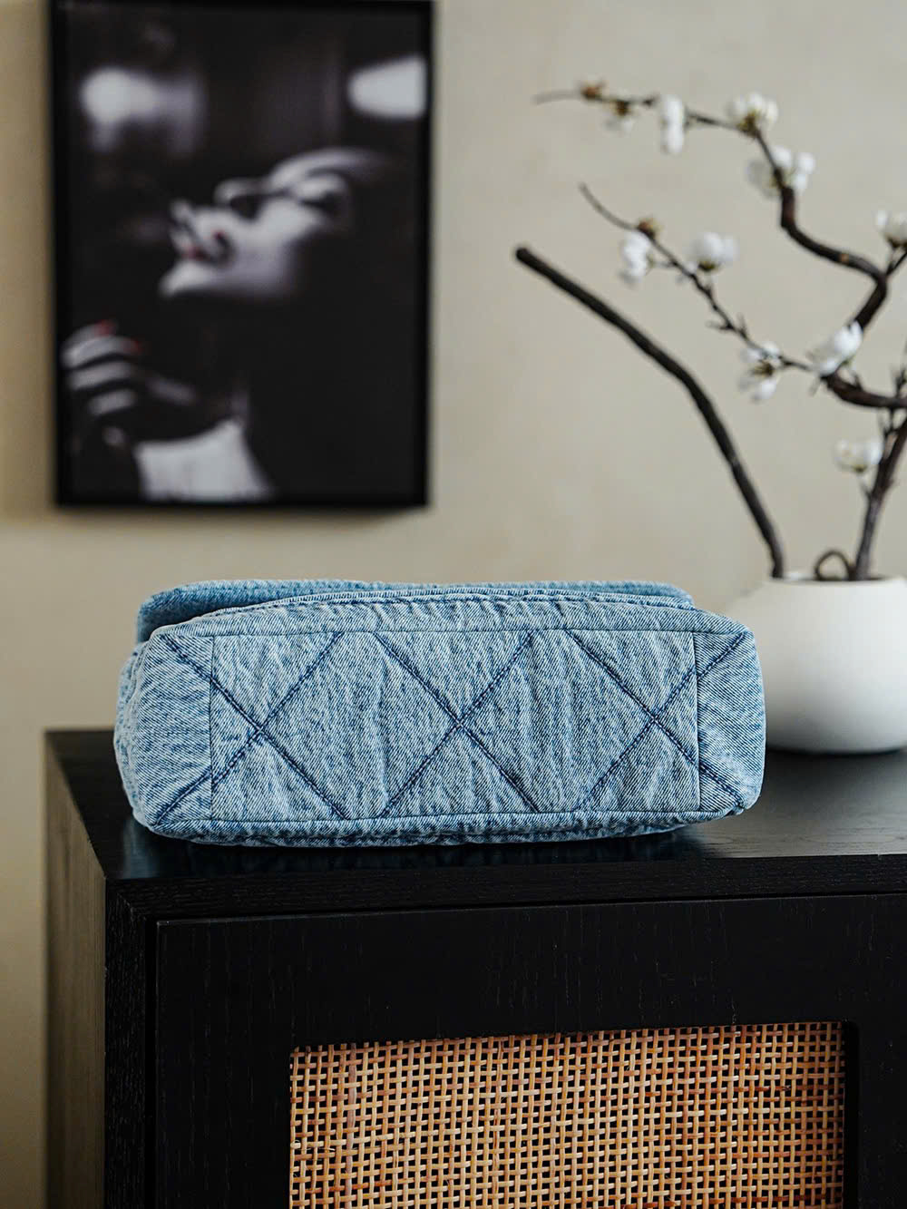 • Thuộc bộ sưu tập Chanel 25K Denim (2025 Thu Đông) • Chất liệu denim xanh nhạt wash phối da bò cao cấp, bền đẹp và thời trang • Họa tiết chần trám kinh điển kết hợp logo đôi C kim loại mạ vàng nổi bật • Dây xích đeo vai có thể điều chỉnh, đeo vai hoặc đeo chéo đều tiện lợi • Dung tích vừa phải, phù hợp đi làm, đi chơi, dạo phố hằng ngày • Chất liệu denim bền, dễ phối đồ, phong cách trẻ trung năng động • Mẫu mới vừa thời trang vừa thực tế, item không thể thiếu cho tín đồ Chanel