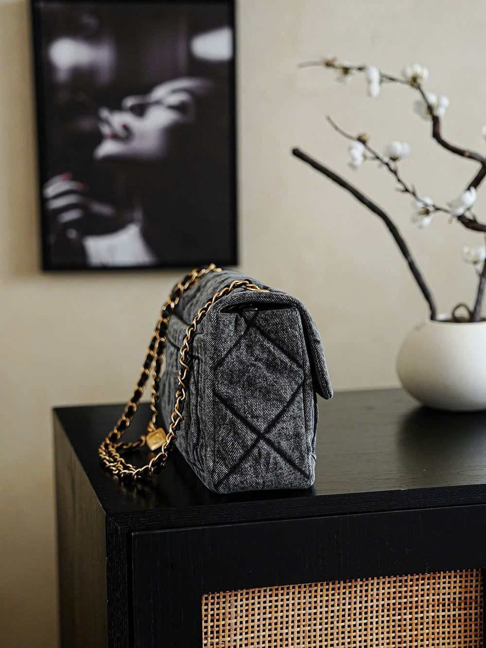 Túi xách Chanel siêu cấp Denim Chain Bag 25K Da Bò Phối Denim