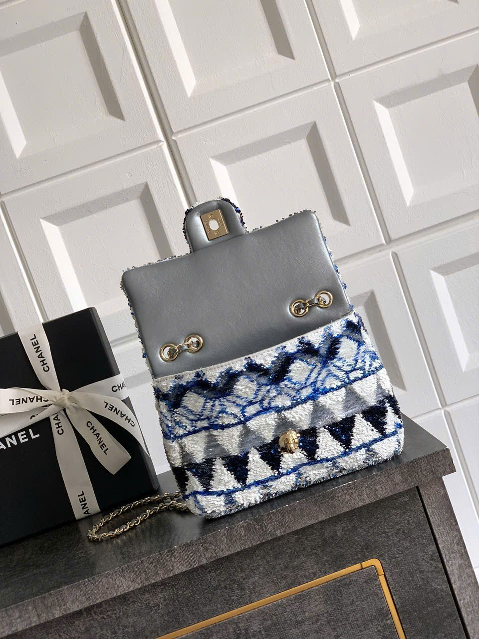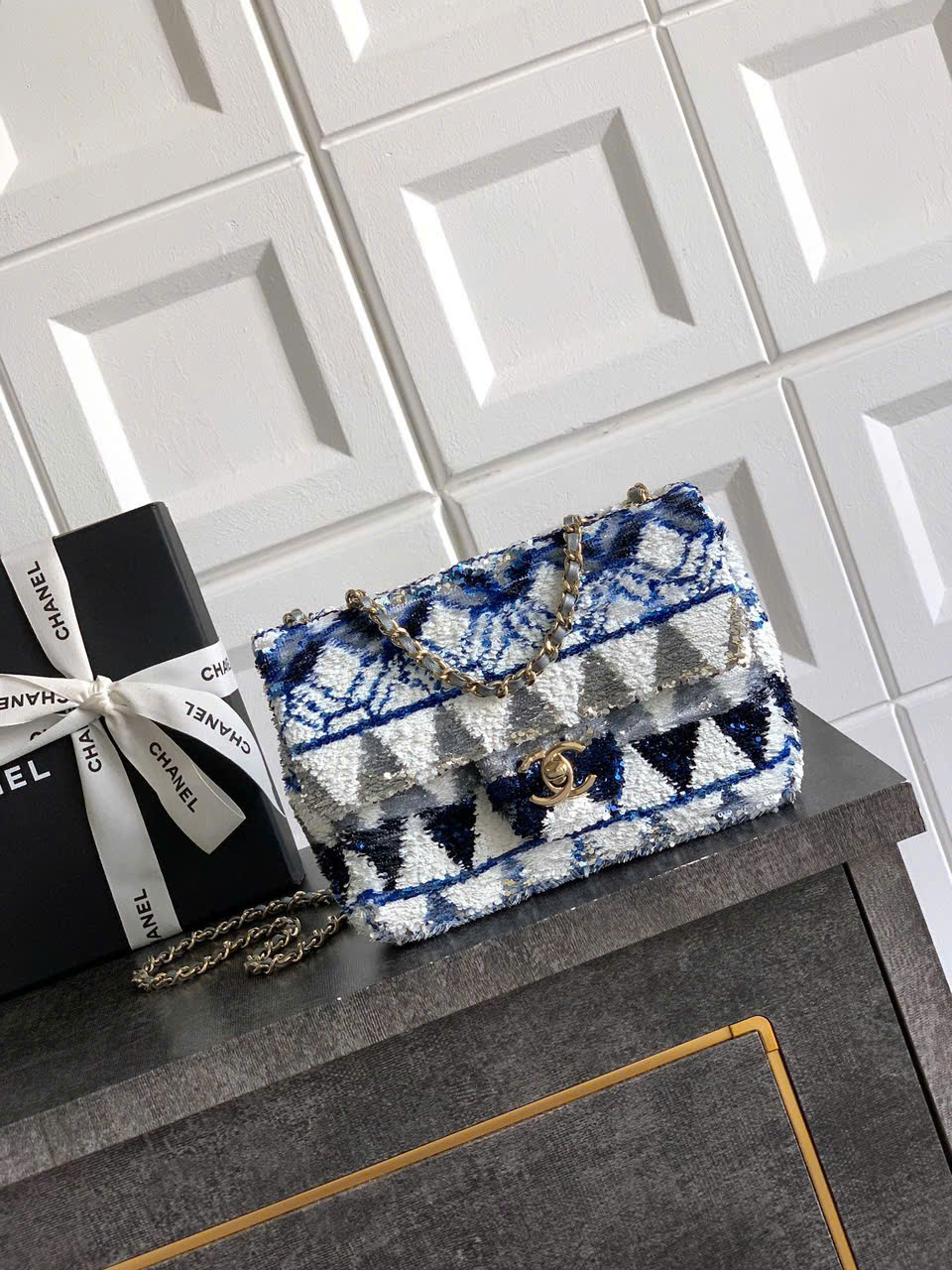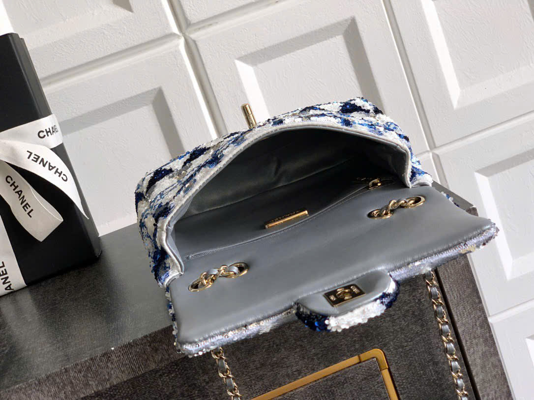 - Tên Sản Phẩm: Túi Xách Chanel Siêu Vip CF Đính Sequin Thêu Kim Sa - Size 20cm
