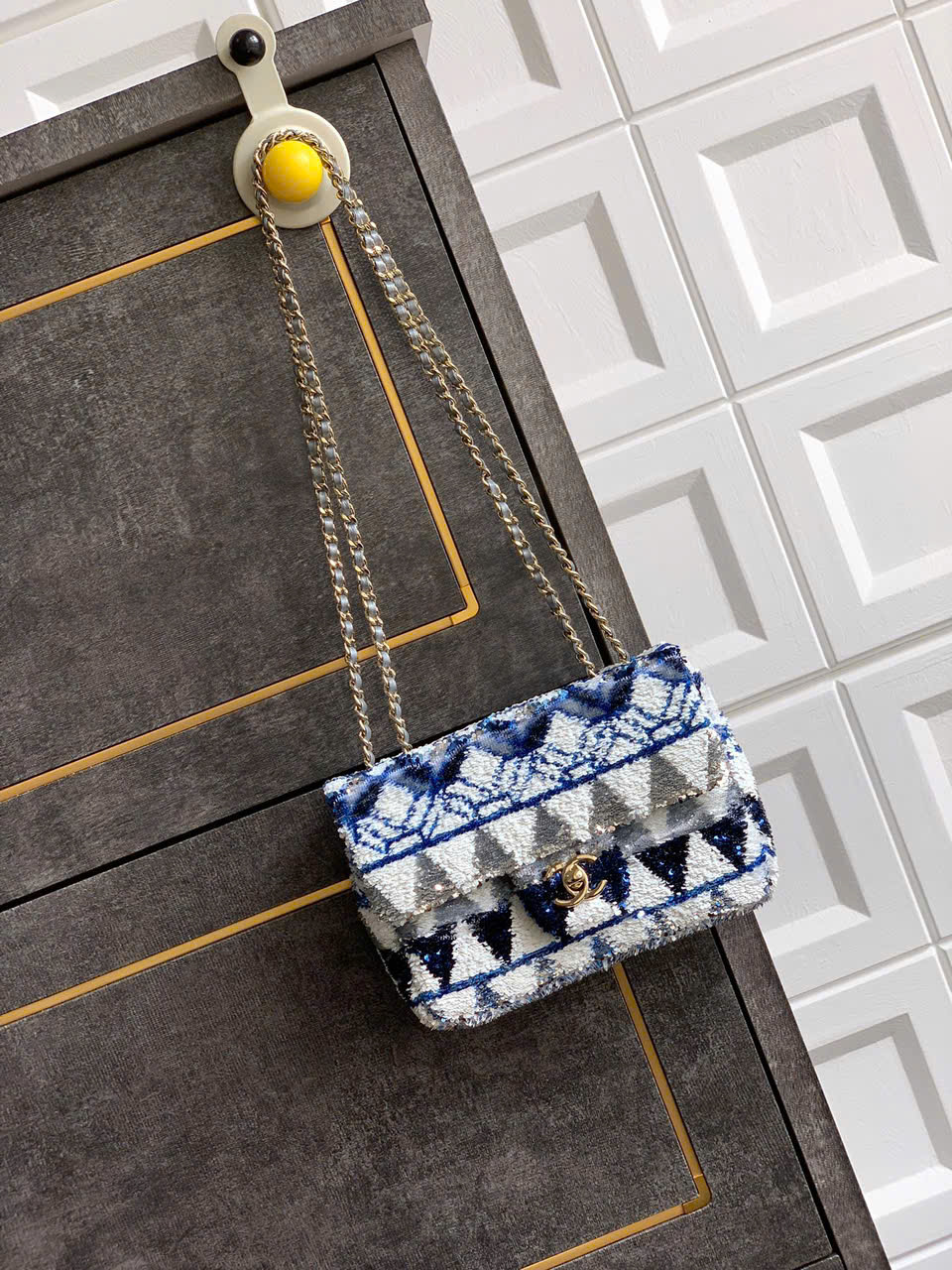 Túi Xách Chanel Siêu Vip CF Đính Sequin Thêu Kim Sa - Size 20cm