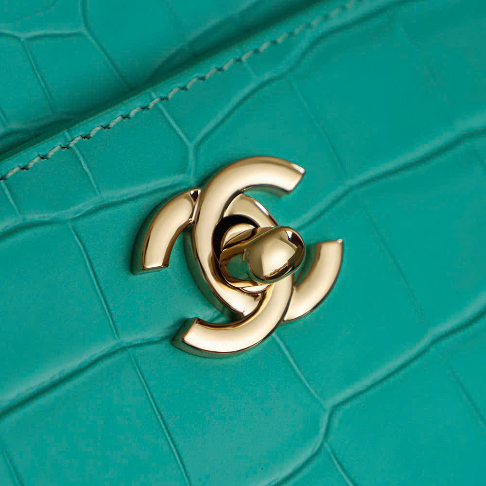 Túi Xách Chanel Siêu Vip Da Bò Dập Vân Cá Sấu Màu Xanh Bạc Hà