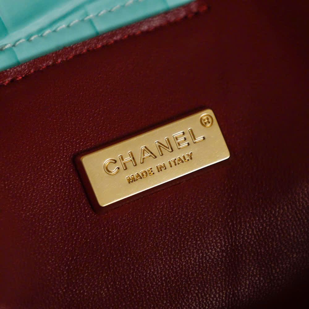 - Tên Sản Phẩm: Túi Xách Chanel Siêu Vip Da Bò Dập Vân Cá Sấu Màu Xanh Bạc Hà