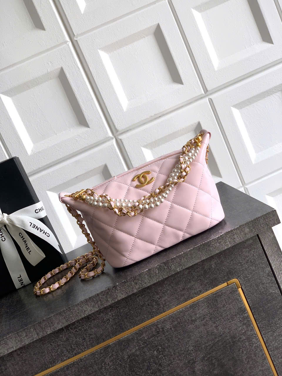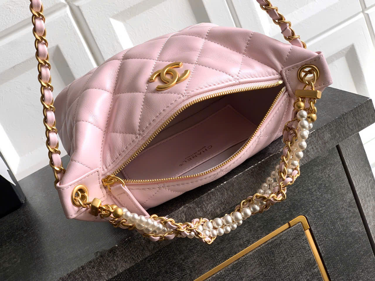 Tên sản phẩm: Túi Chanel Hobo Mini 26C – Màu Hồng (Lambskin & Pearl Chain)