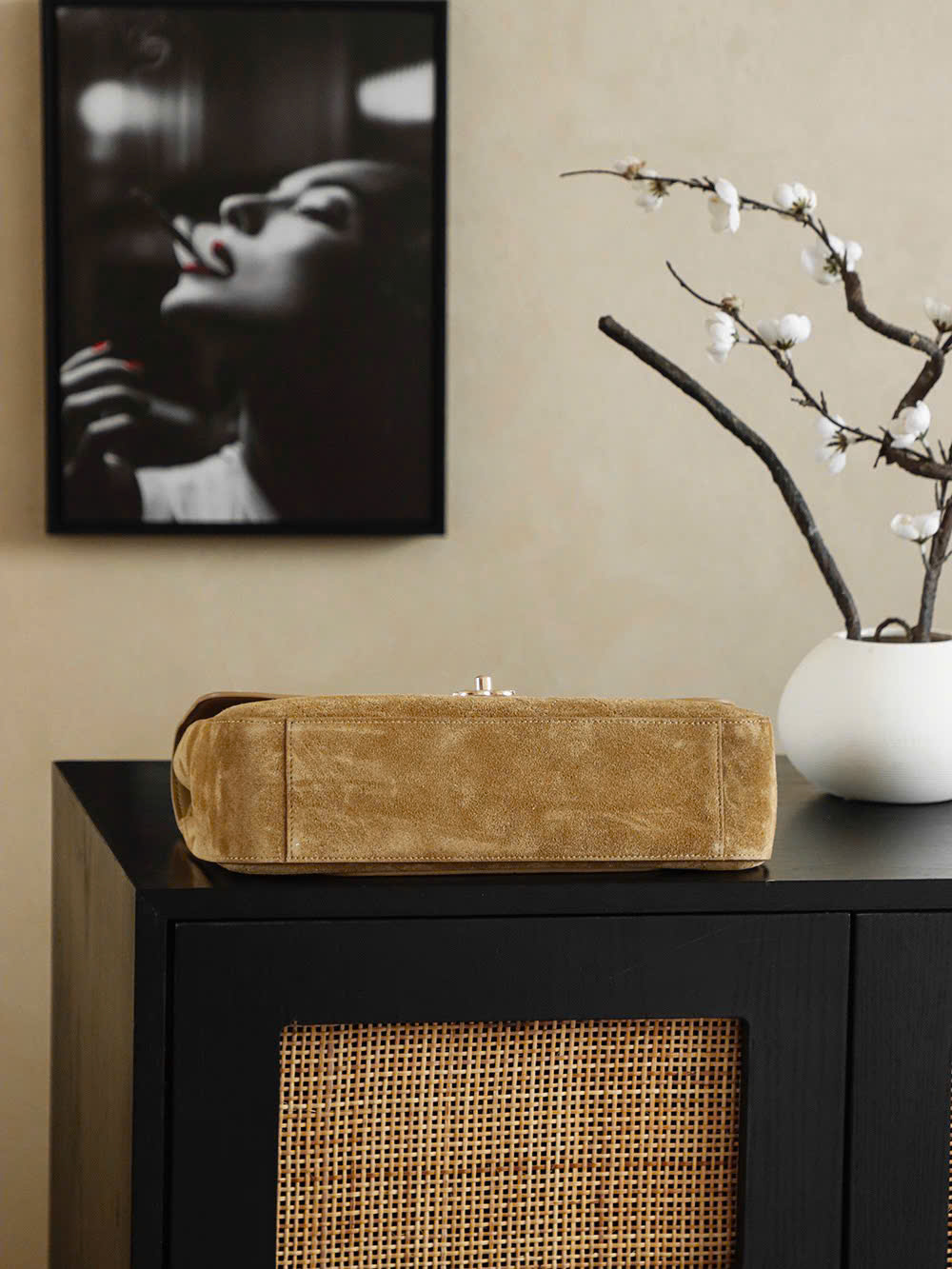 • Chất liệu da lộn màu sẫm, mềm mịn, cảm giác sang trọng và trầm ấm