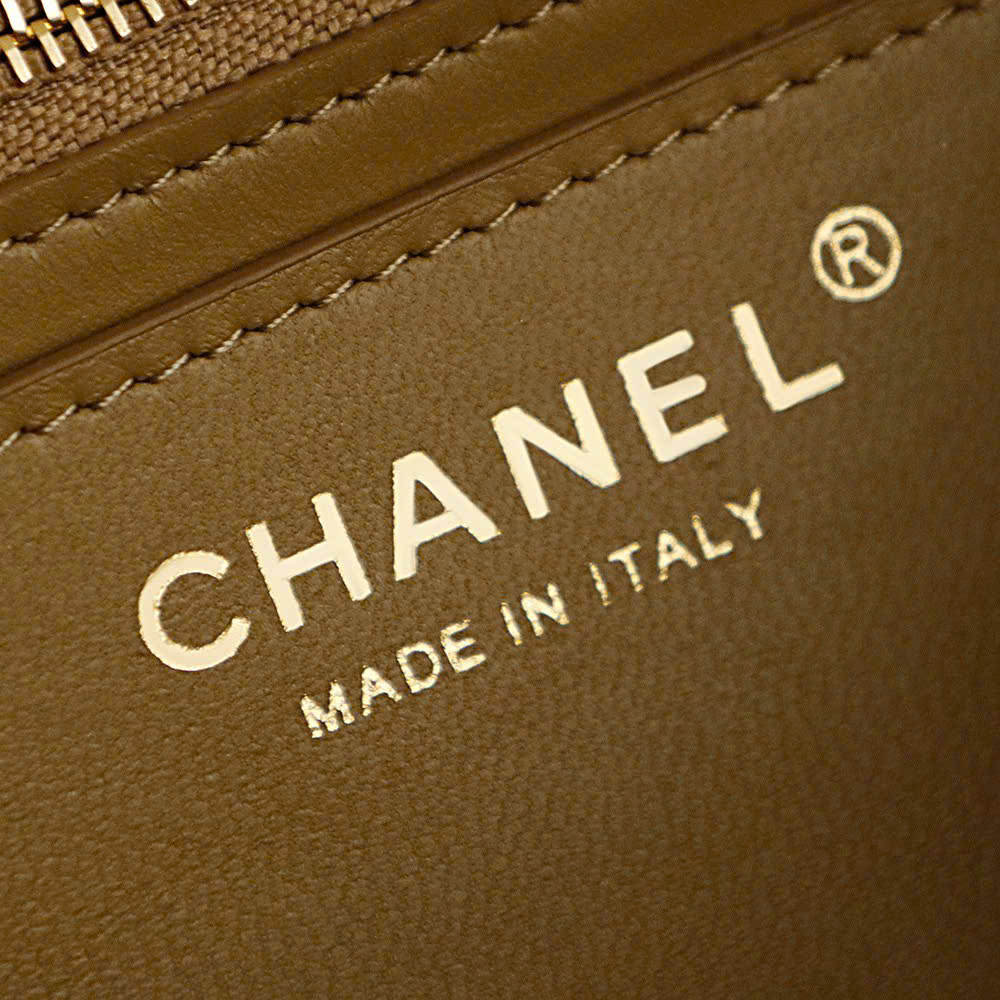• Họa tiết chần trám đặc trưng, phối khóa kim loại Double C màu vàng nổi bật