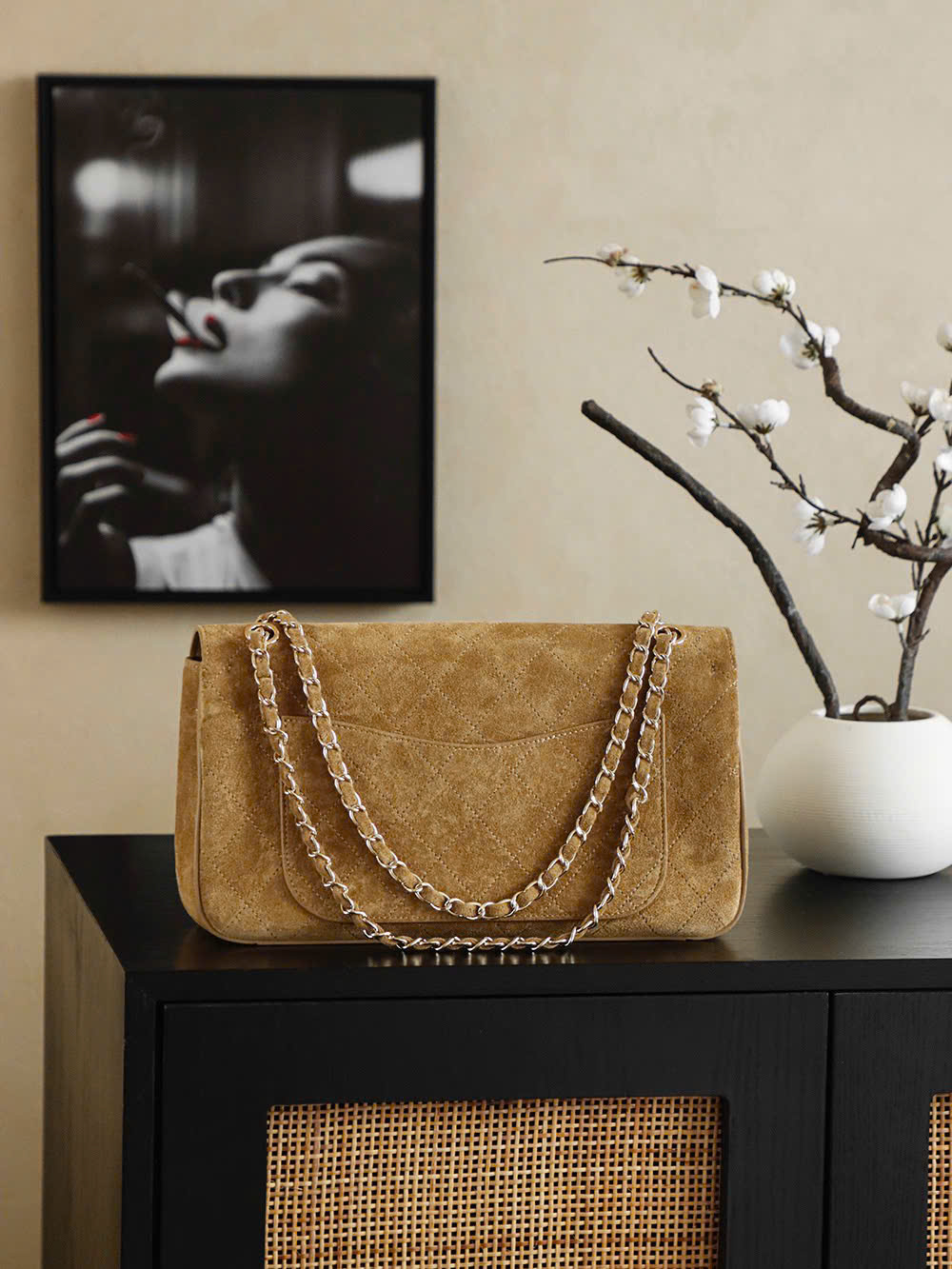 Tên sản phẩm: Túi xách CHANEL siêu VIP 26SS Matthieu Blazy Runway double chain khóa CC – màu kem da lộn sẫm