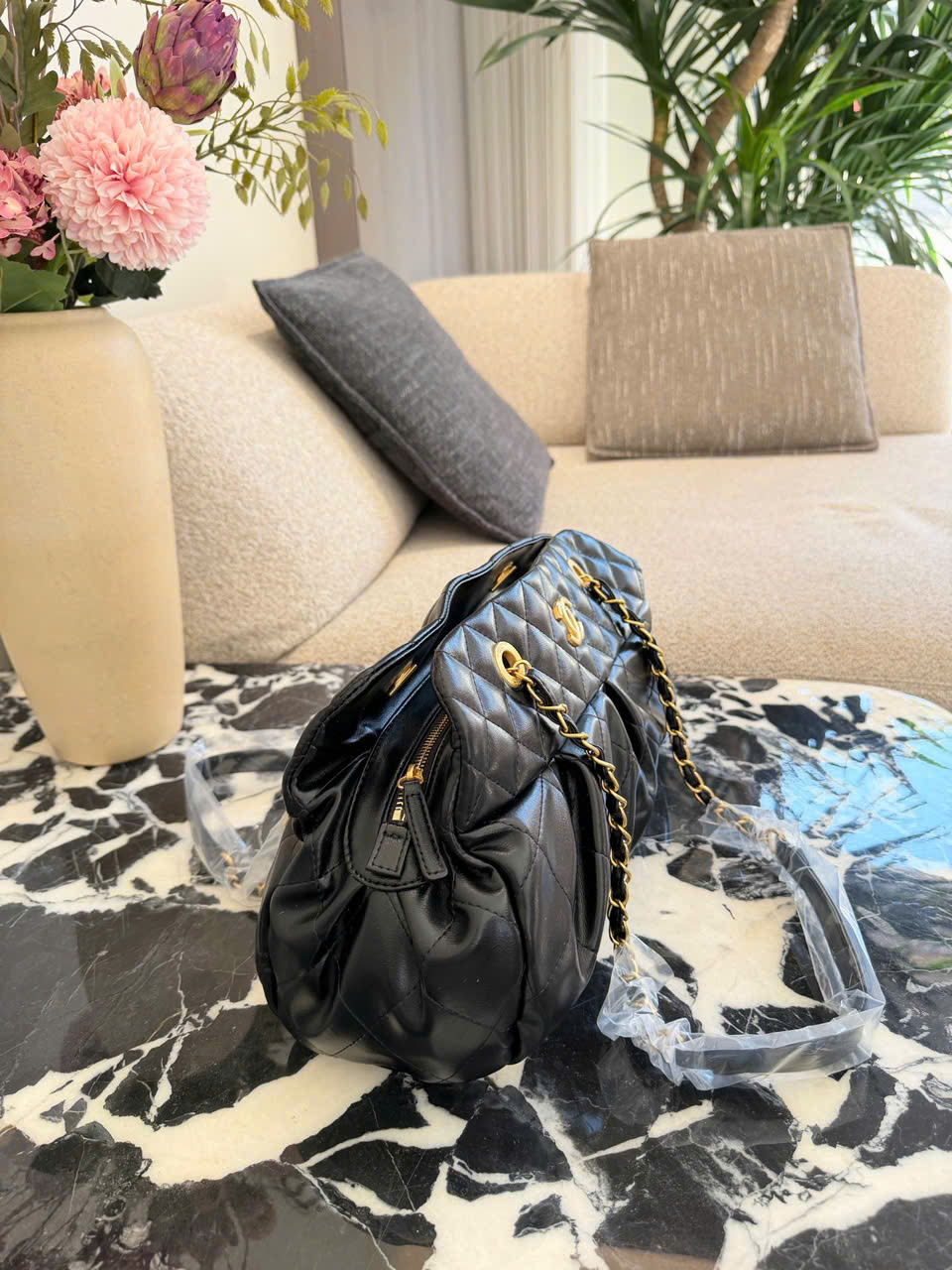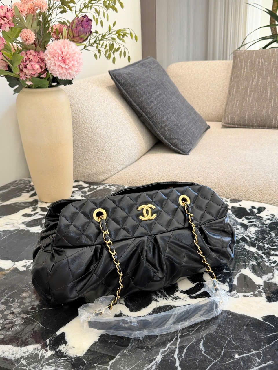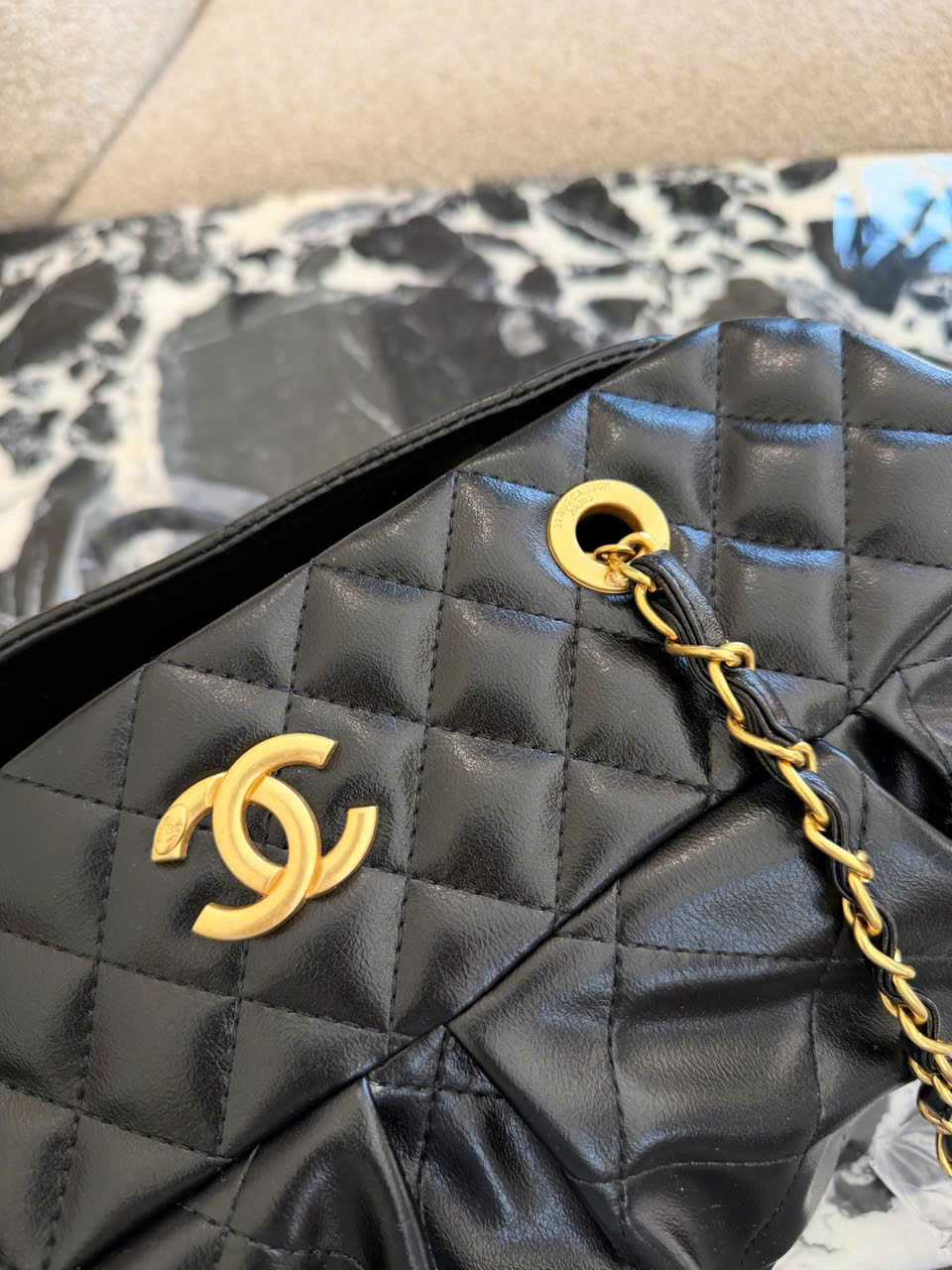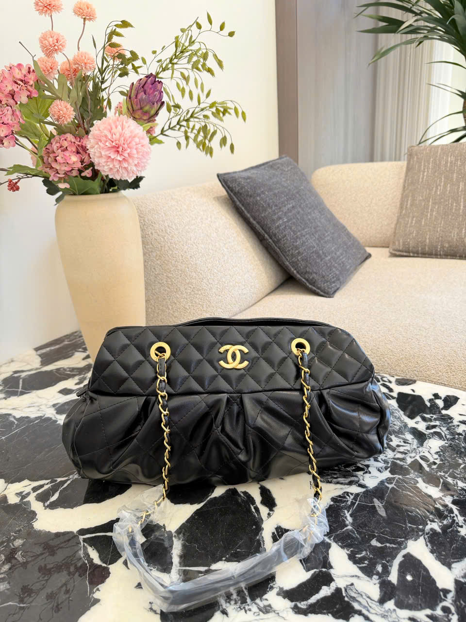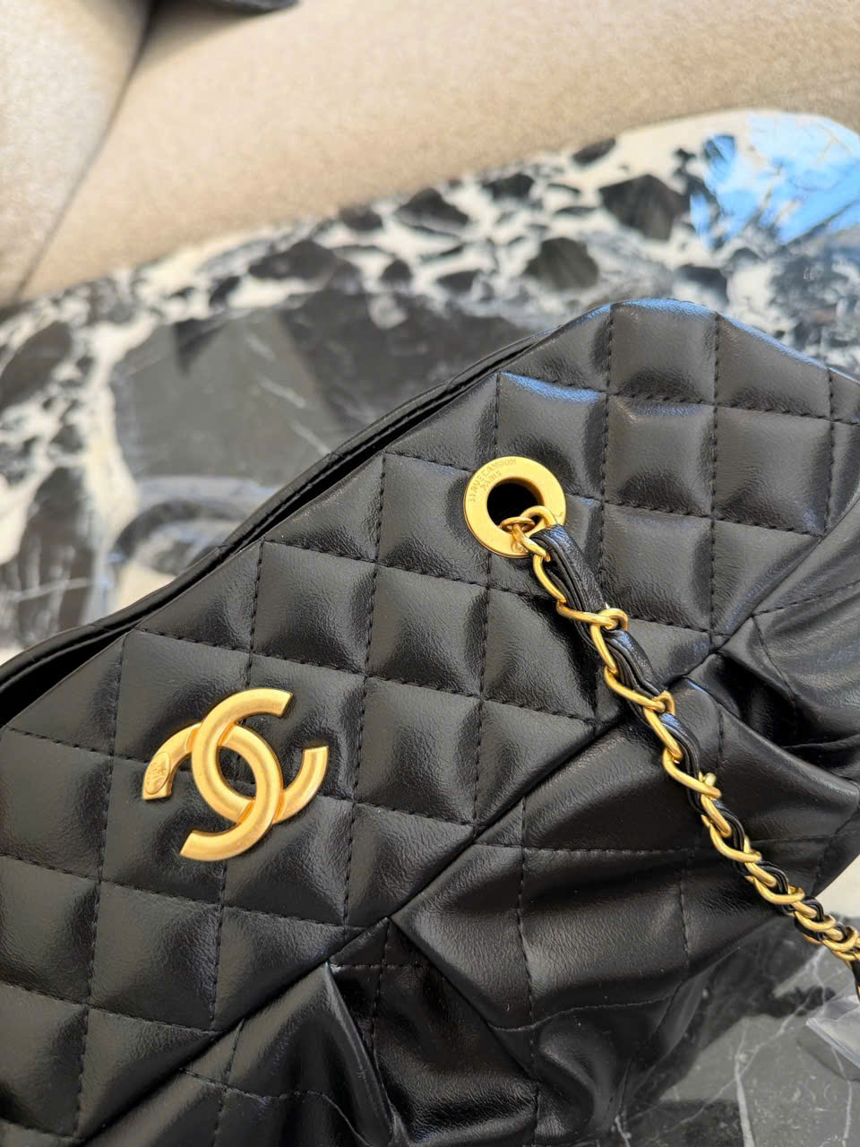 • Mẫu túi bowling Chanel màu đen – vàng sang trọng
