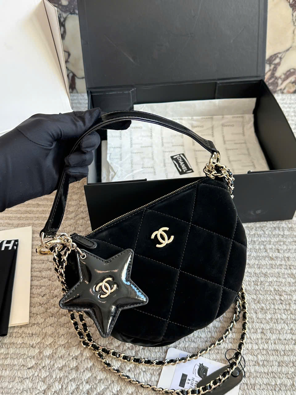 Túi xách Chanel super full box 25N Coco Neige – túi máy ảnh hình trăng lưỡi liềm
