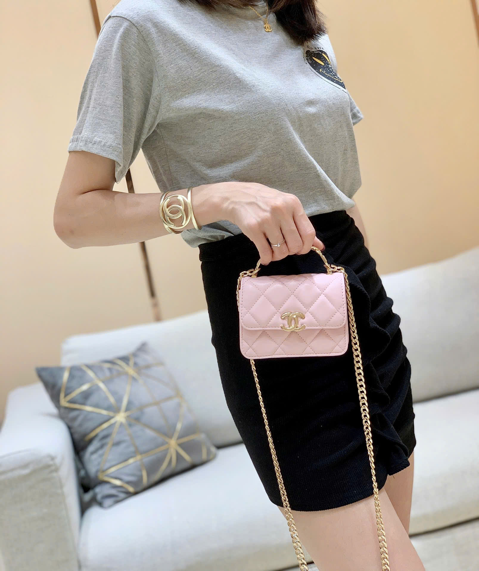 Túi xách Đeo Chéo Mini Chanel 2022 CC Enamel Handle Mini Bag – Like Auth