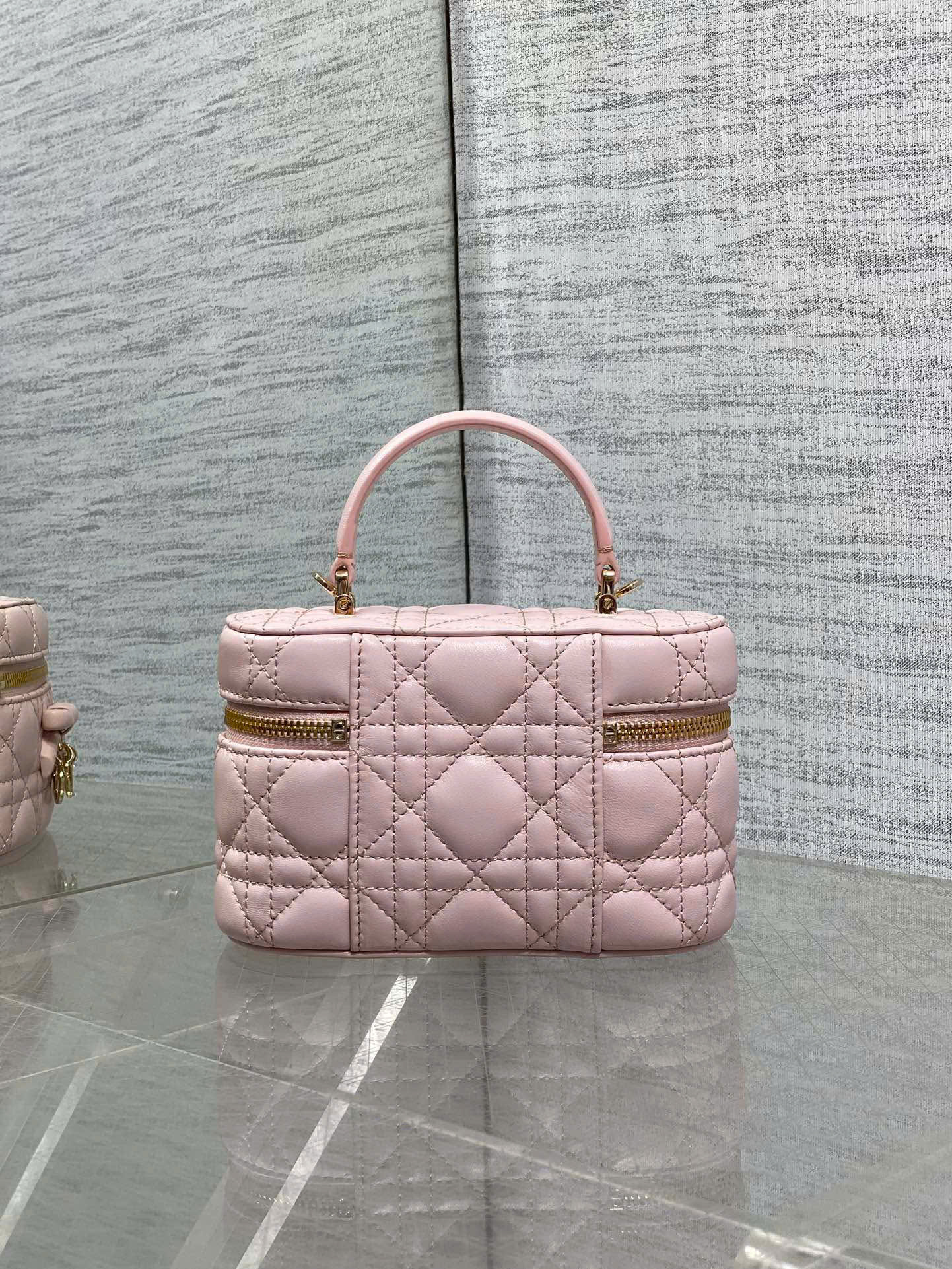 • Thiết kế cosmetic bag nổi bật với họa tiết chần bông kinh điển và móc kim loại hình nơ tinh tế.