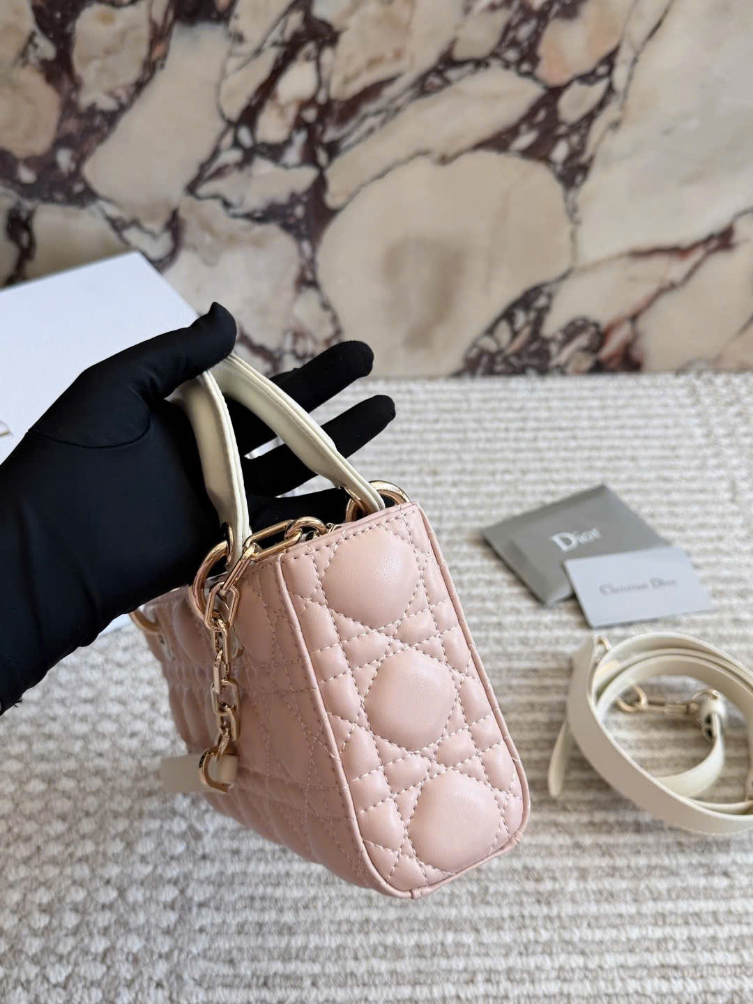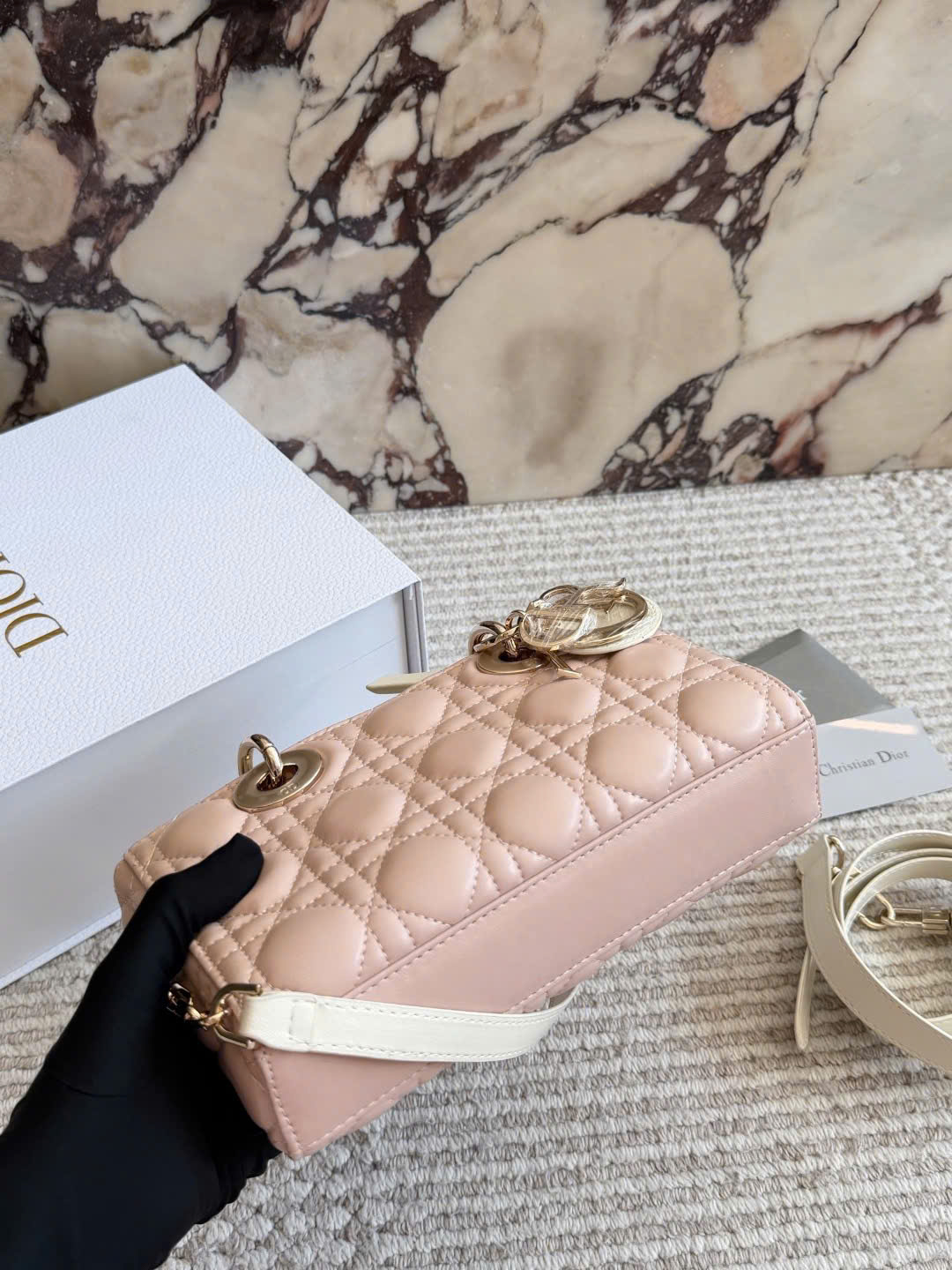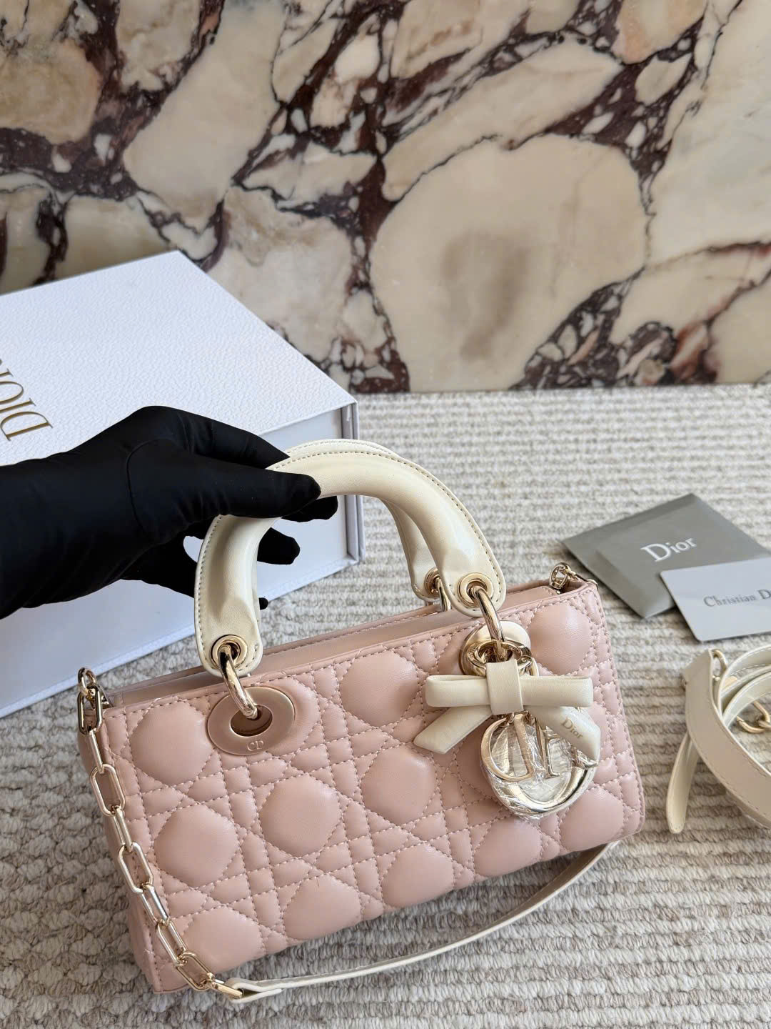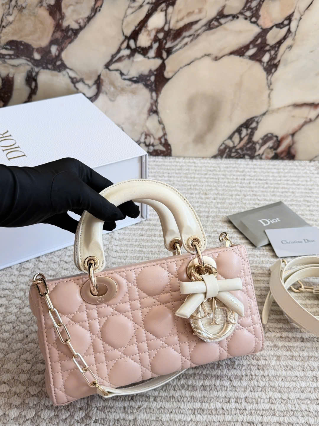 Túi xách Dior Lady D-Joy Da Cừu Nơ Phối Màu – 22cm – màu hồng