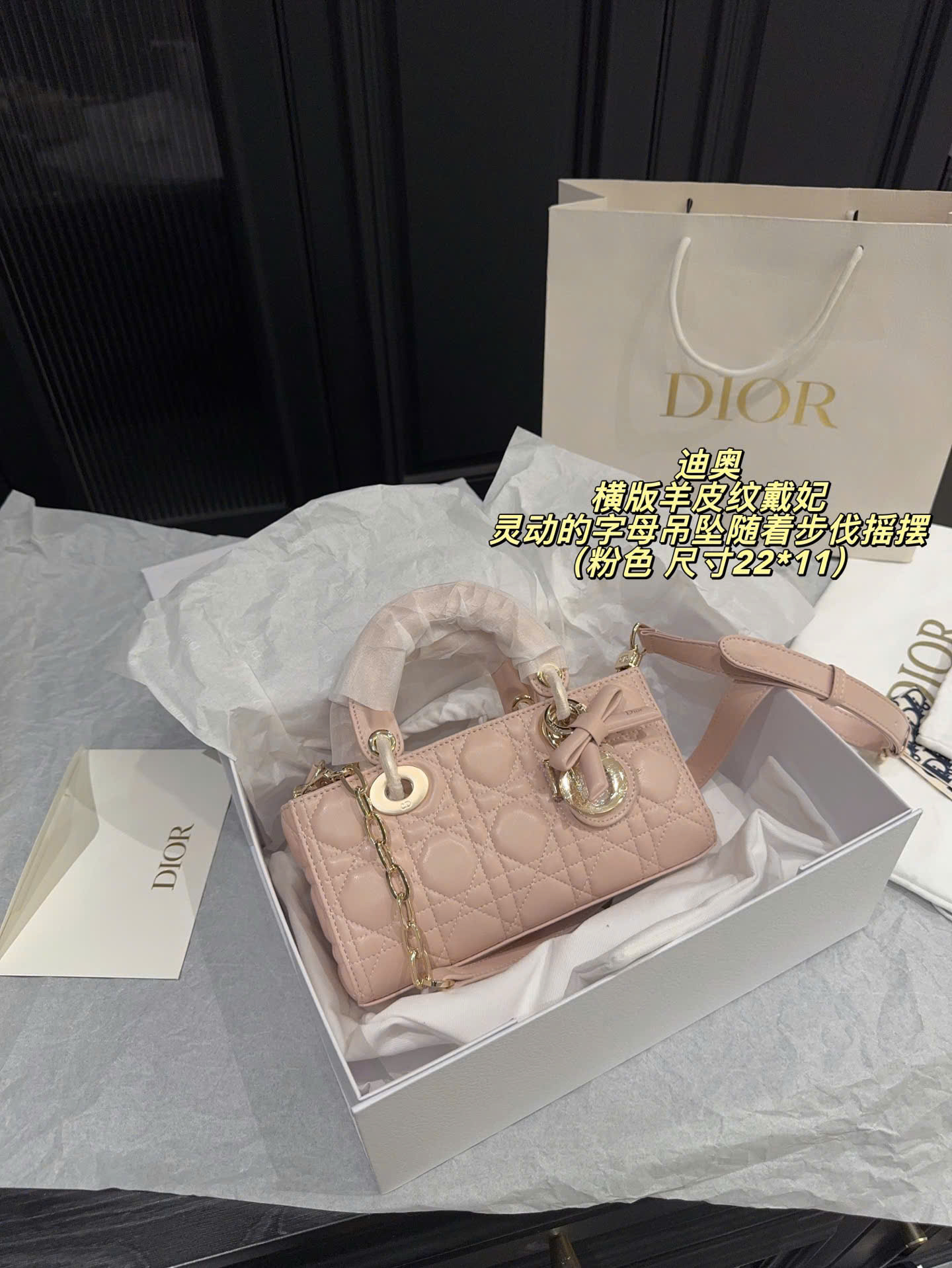 - Tên Sản Phẩm: Túi xách Dior Lady D-Joy Da Cừu Nơ Phối Màu – 22cm – màu hồng