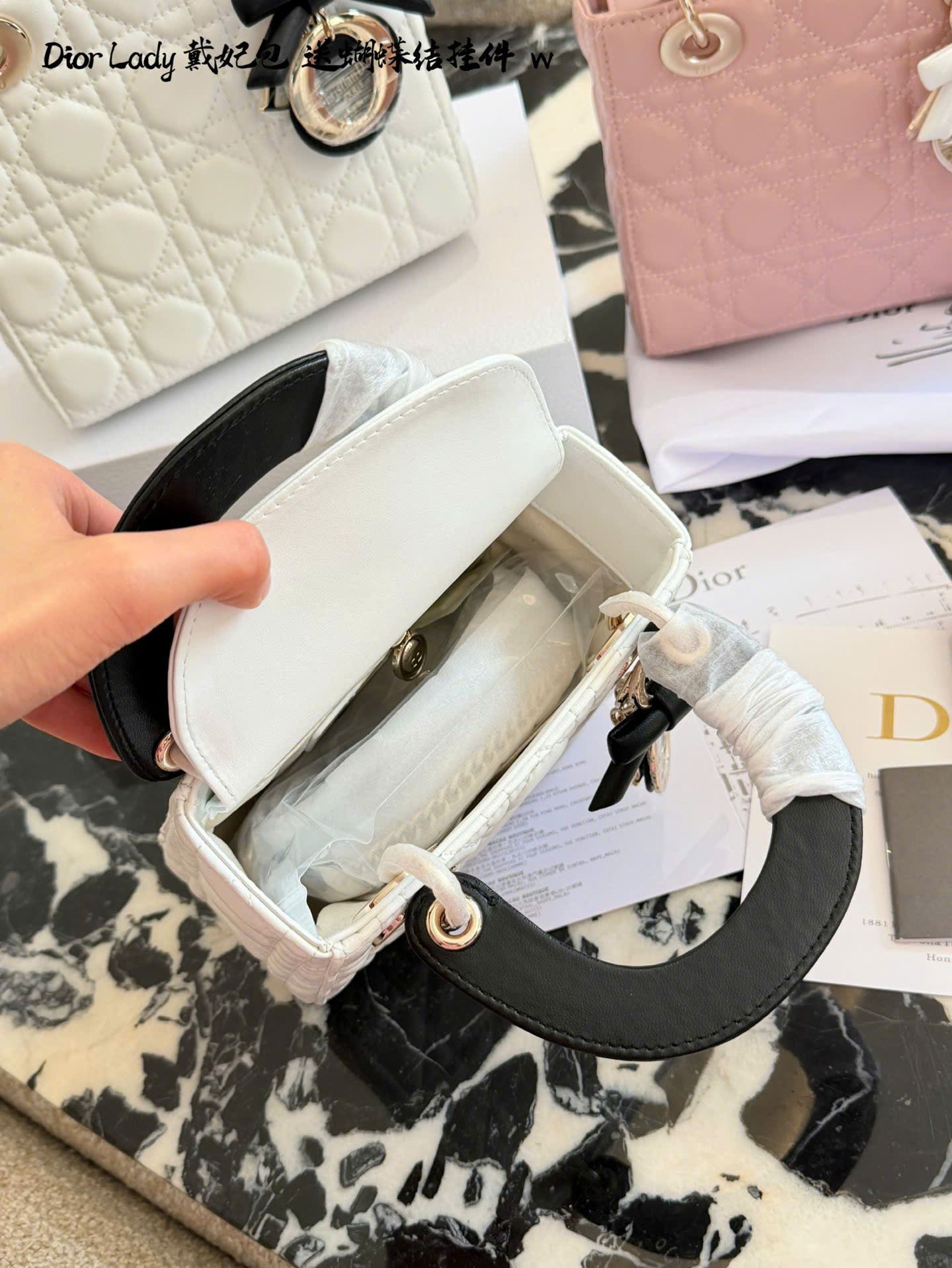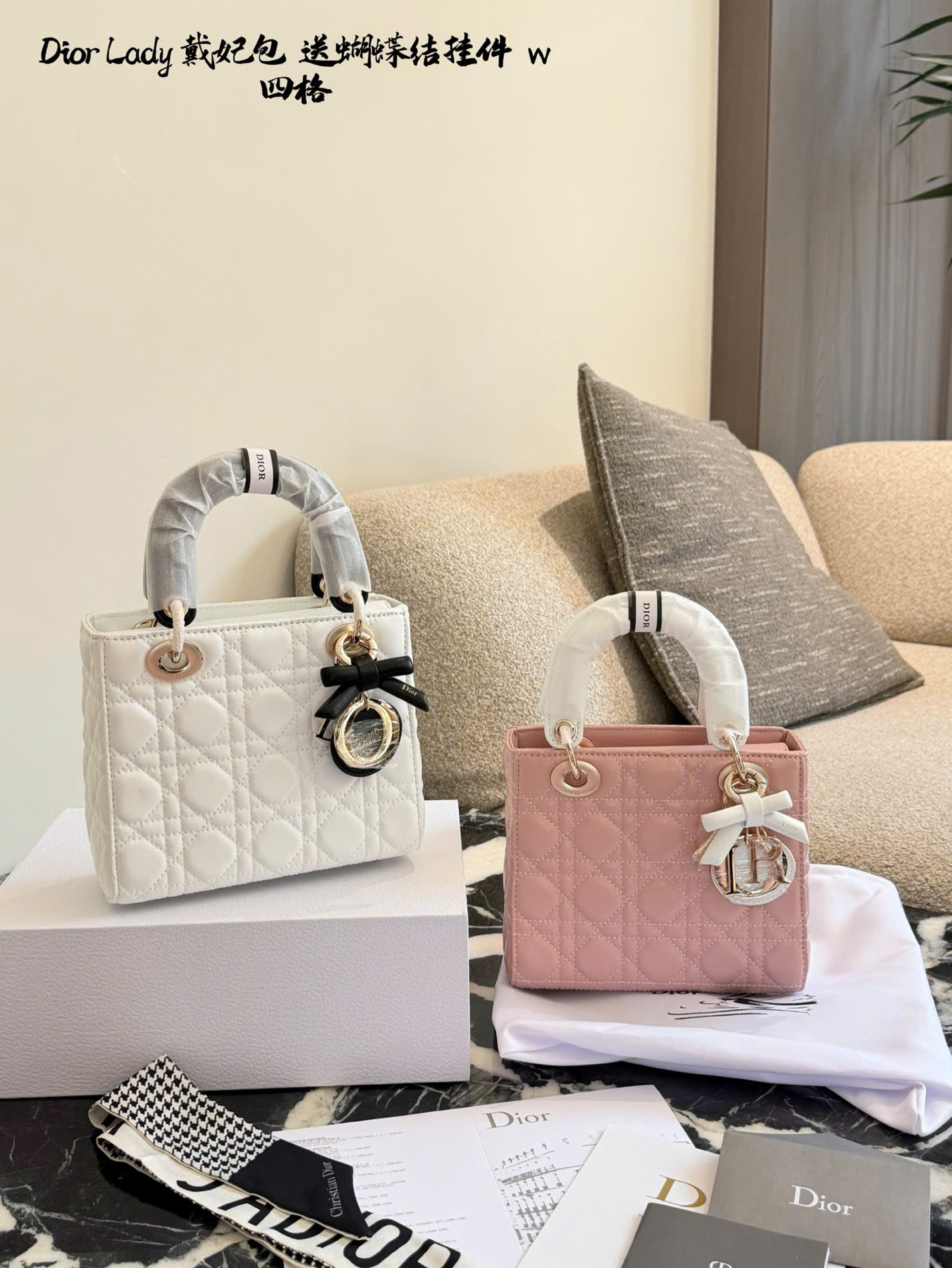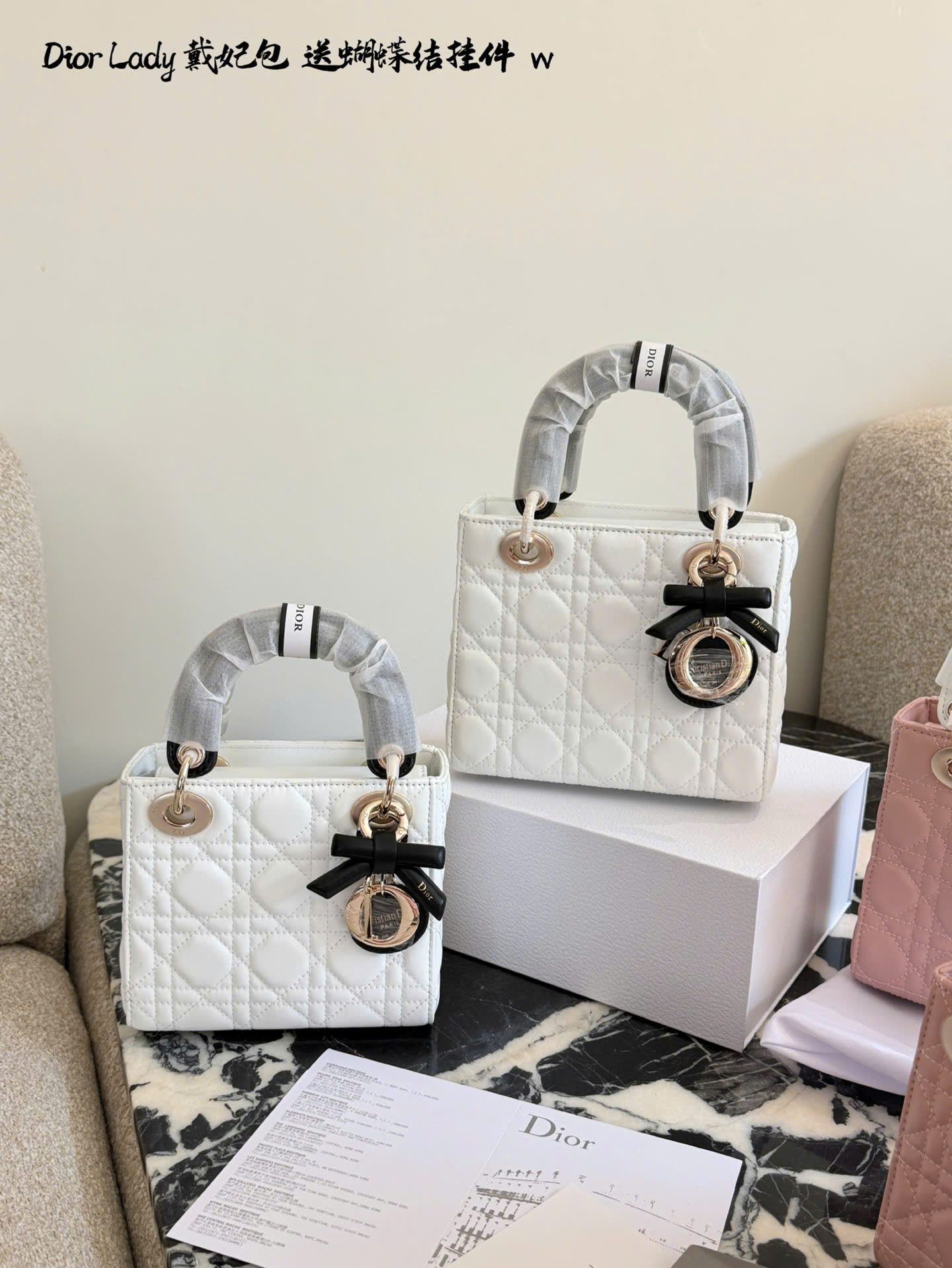 • Mẫu Lady Dior kinh điển, thiết kế 3 ô và 4 ô thanh lịch. • Chất liệu da cừu cao cấp, mềm mại, form chuẩn đẹp. • Họa tiết Cannage đặc trưng, tăng độ nhận diện thương hiệu Dior. • Tay cầm trắng phối nơ, tạo điểm nhấn nữ tính, tinh tế. • Charm D.I.O.R kim loại màu vàng nhạt, sang trọng và nổi bật. • Có thể xách tay, đeo vai hoặc đeo chéo, linh hoạt sử dụng hằng ngày. • Tông màu hồng nhẹ nhàng, dễ phối trang phục mùa xuân hè. • Phiên bản siêu cấp, hoàn thiện tinh xảo, phù hợp sử dụng hoặc làm quà tặng. • Màu sắc: hồng phối tay cầm trắng