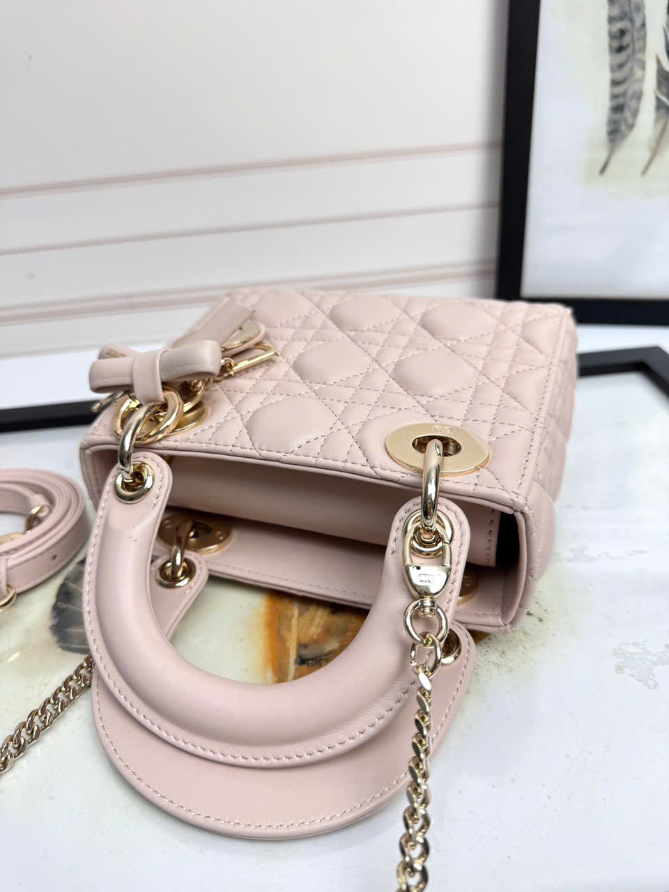 Túi xách Dior Lady siêu vip 3 ngăn nơ bướm D6603 màu hồng phấn