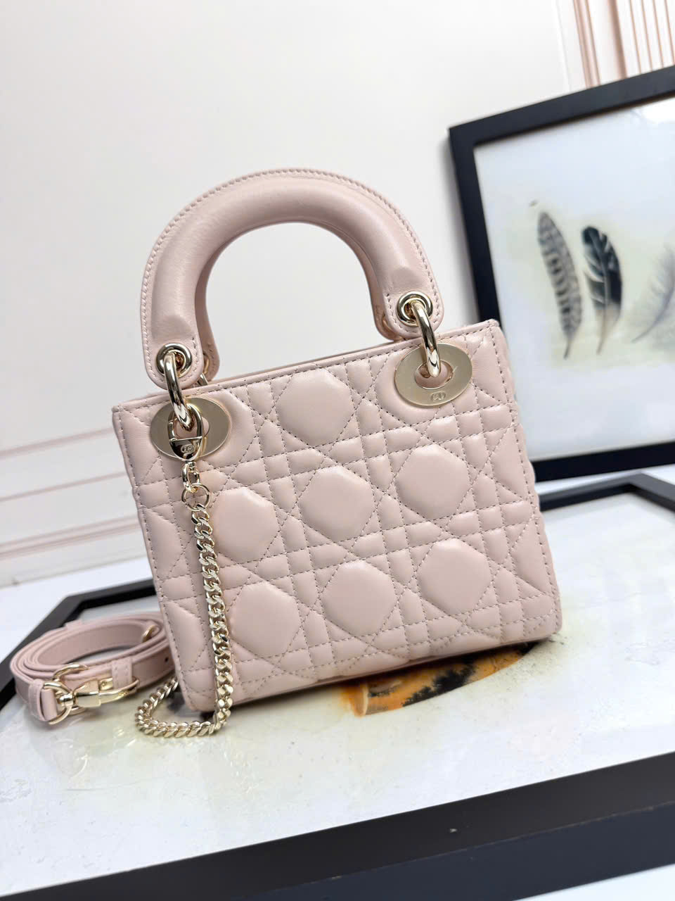 • Họa tiết Cannage (vân mây đan) chần chỉ tinh xảo, nhận diện kinh điển của dòng Lady