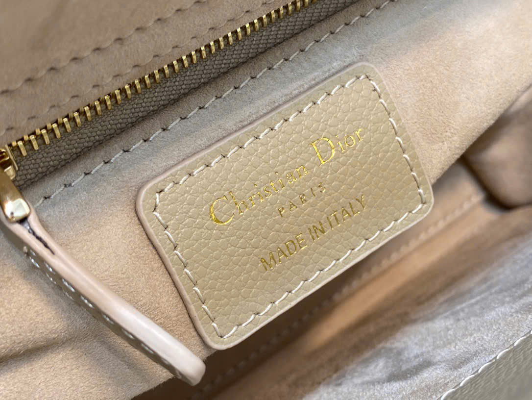 • Lady Dior 4 ô da bò vân bi (da hạt), màu trà sữa thanh lịch, dễ phối đồ