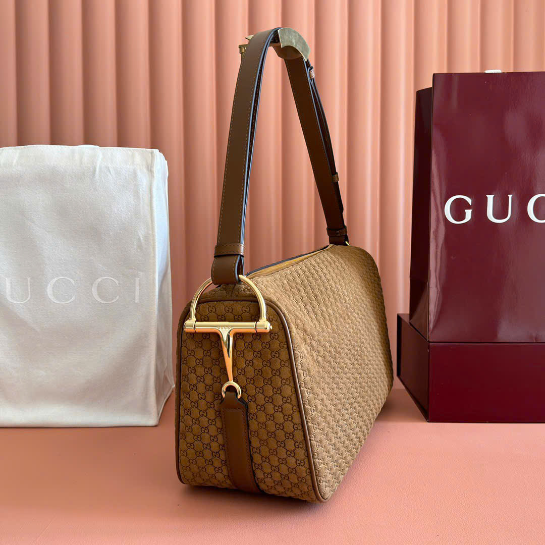 • Thuộc dòng Gucci Half Horsebit – tái hiện biểu tượng nửa khóa ngựa (Half Horsebit) mang DNA đặc trưng của Gucci • Thiết kế kết hợp phom dáng casual hiện đại và phong cách sang trọng cổ điển • Chất liệu da bò hạt mềm cao cấp, bề mặt nâu ép g, cầm rất êm tay, form đứng đẹp • Phụ kiện kim loại tông vàng, sáng bóng, hoàn thiện tinh xảo • Bên trong lót vải cotton – linen pha, có 1 ngăn mở tiện dụng • Dây đeo vai da bò thật, có thể điều chỉnh (độ cao: 33 – 38 cm) • Đóng mở khóa kéo, an toàn khi sử dụng • Trọng lượng khoảng 0.95 kg, đeo thoải mái hằng ngày • Màu sắc: nâu ép g – full da, dễ phối đồ, dùng đi làm, đi chơi đều hợp • Kèm full bộ hộp – túi – phụ kiện store chính hãng