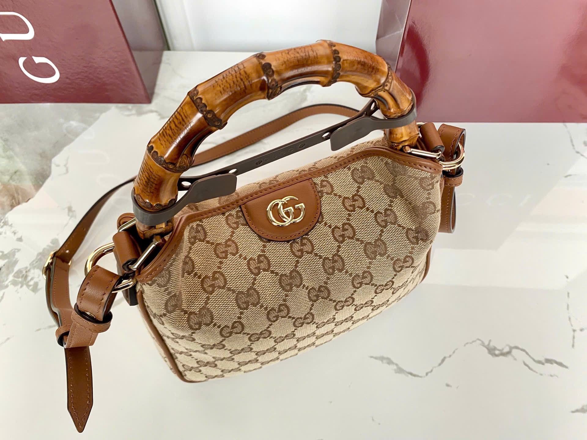 • Mẫu Gucci mới, thiết kế 2 trong 1: xách tay + đeo vai tiện lợi.