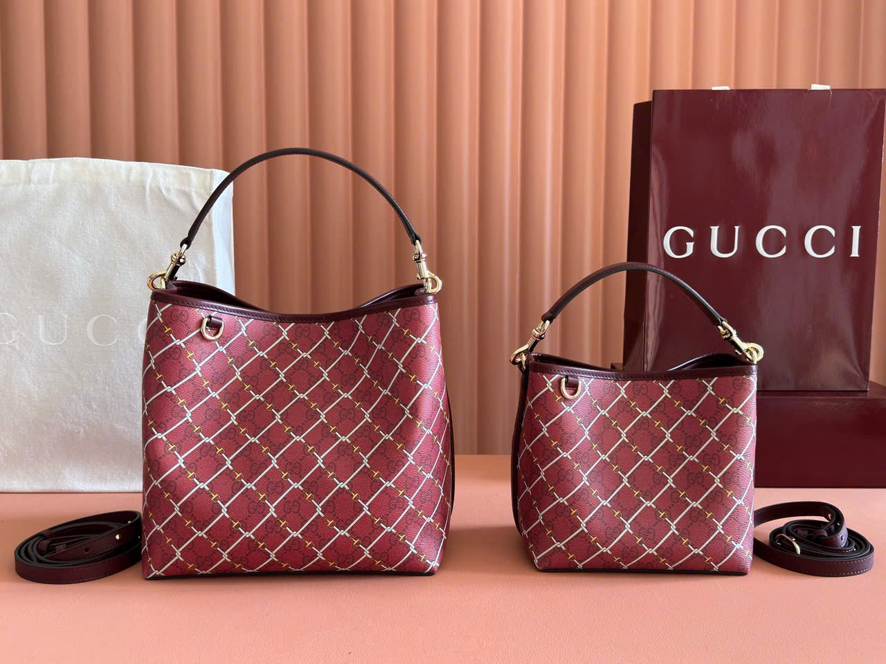 - Tên Sản Phẩm: Túi xách Gucci siêu cấp GG Emblem túi xô mini Ancora đỏ