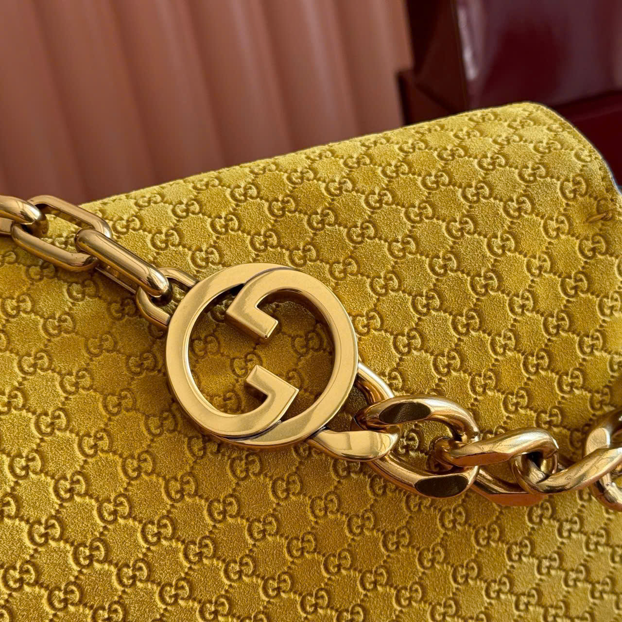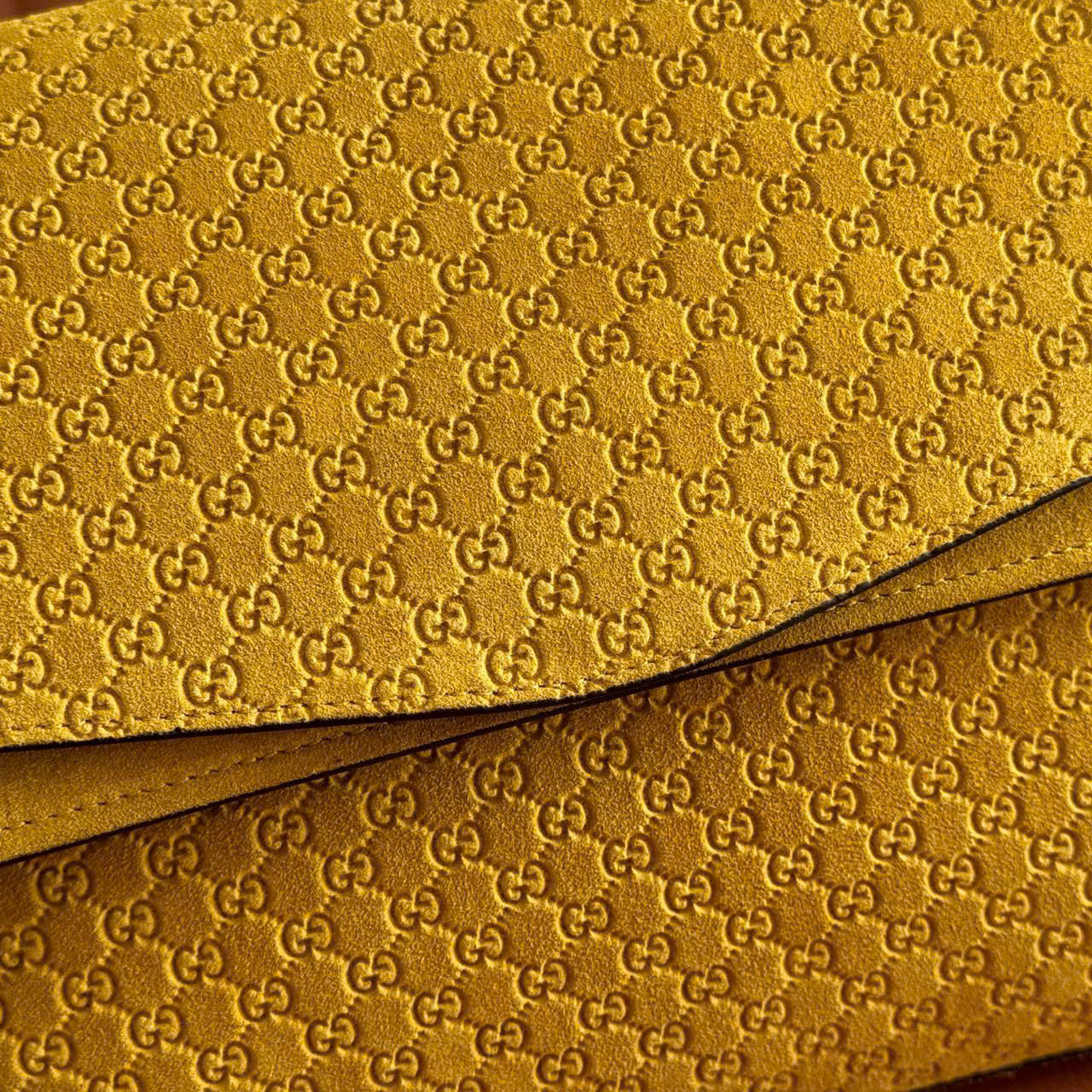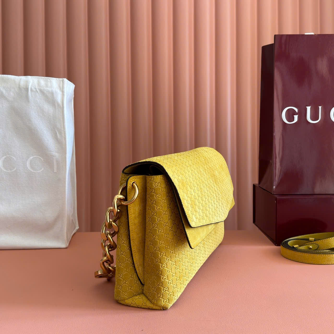 Túi xách Gucci siêu cấp GG Embossed Suede Shoulder Bag – màu vàng nhung dập vân