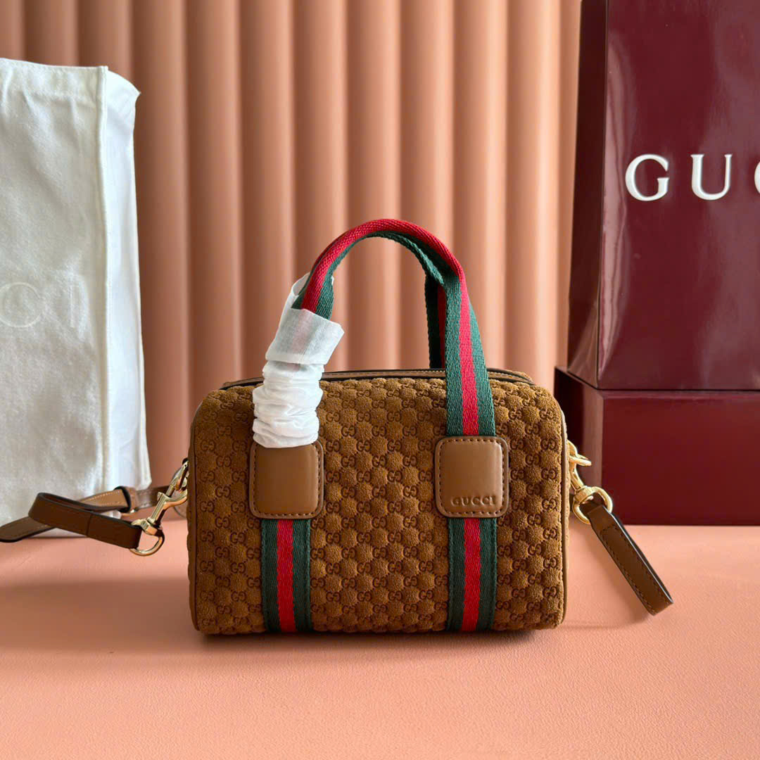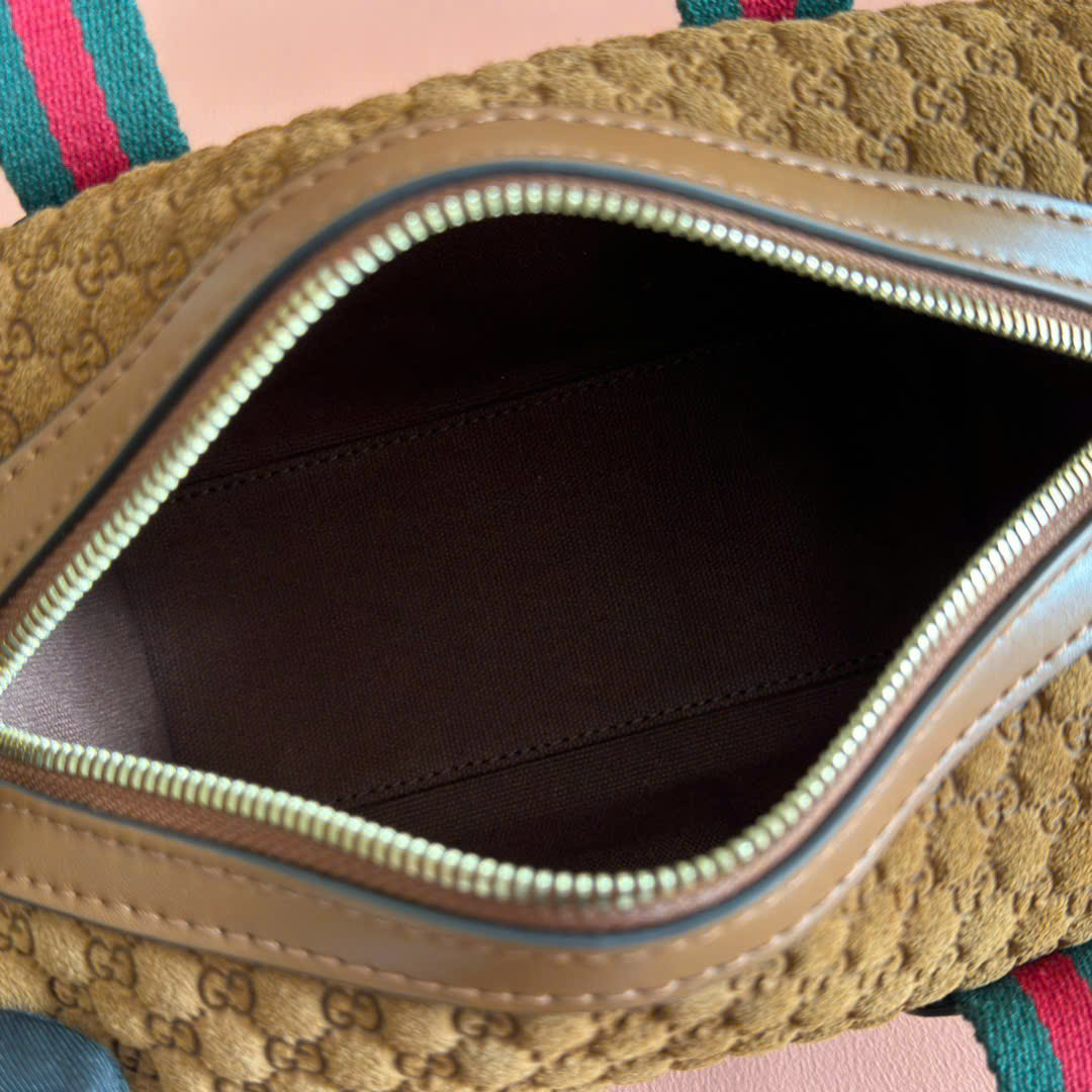 Túi xách Gucci siêu cấp Mini GG Travel 859975 nâu be viền đỏ