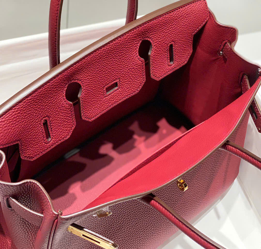 Túi xách Hermès Birkin 30cm – màu đỏ Bordeaux · khóa vàng