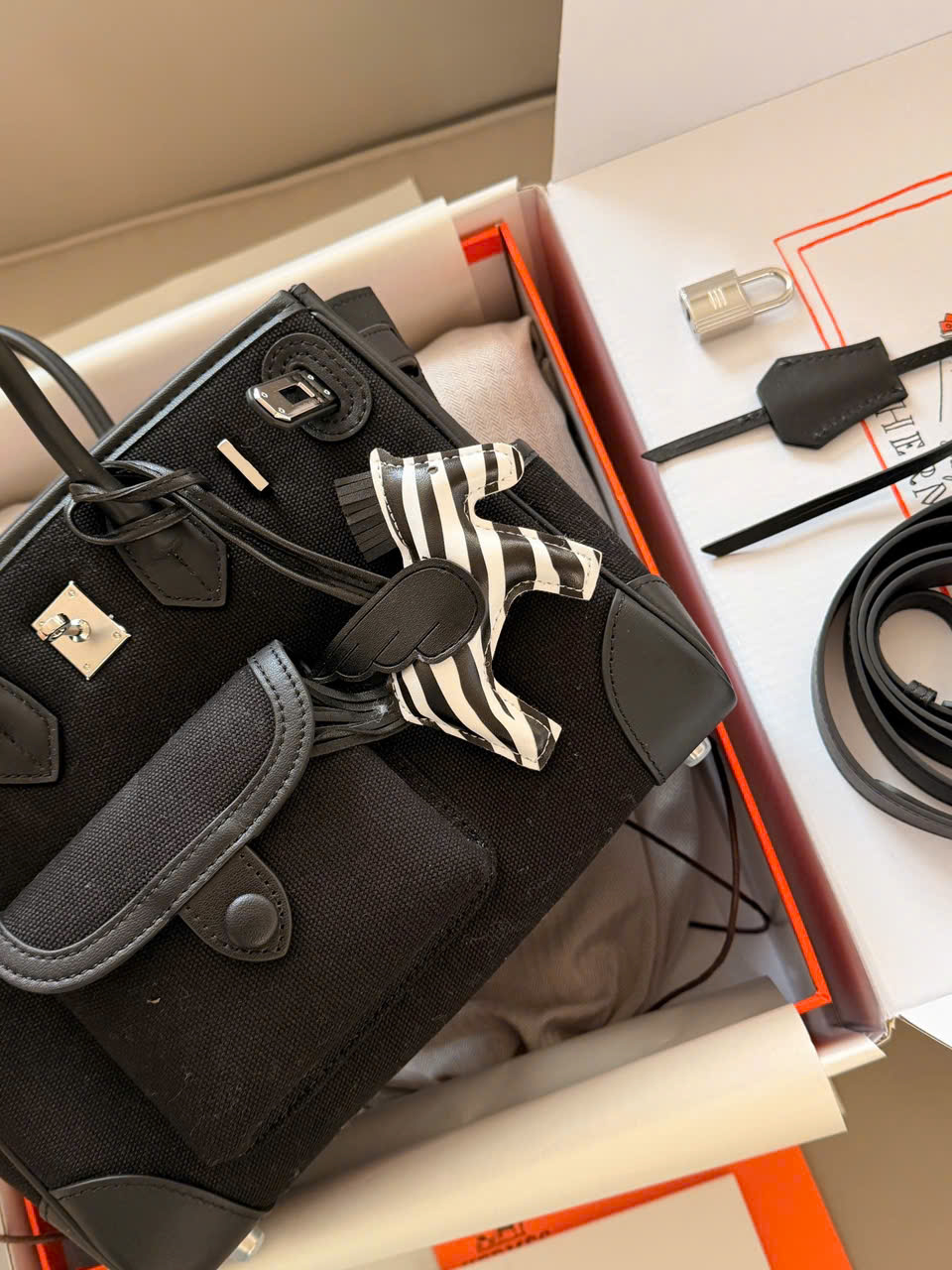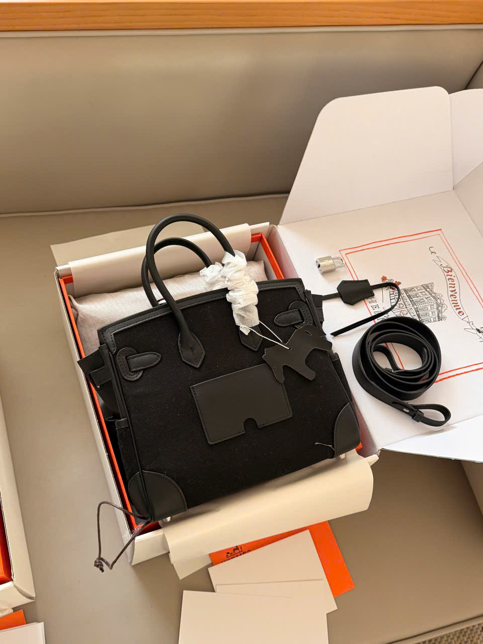 Tình trạng: Super full box (đầy đủ hộp, phụ kiện) Chất liệu: • Vải canvas phối da • Có hộp đi kèm Kích thước: 25 × 20 cm Mẫu túi: • Phong cách công sở – workwear pha nét old money (cổ điển, sang trọng) • Lấy cảm hứng từ Hermès Birkin (B25) Cargo Điểm nổi bật: