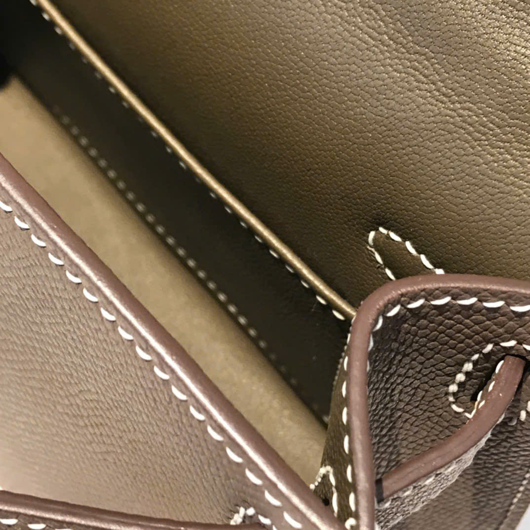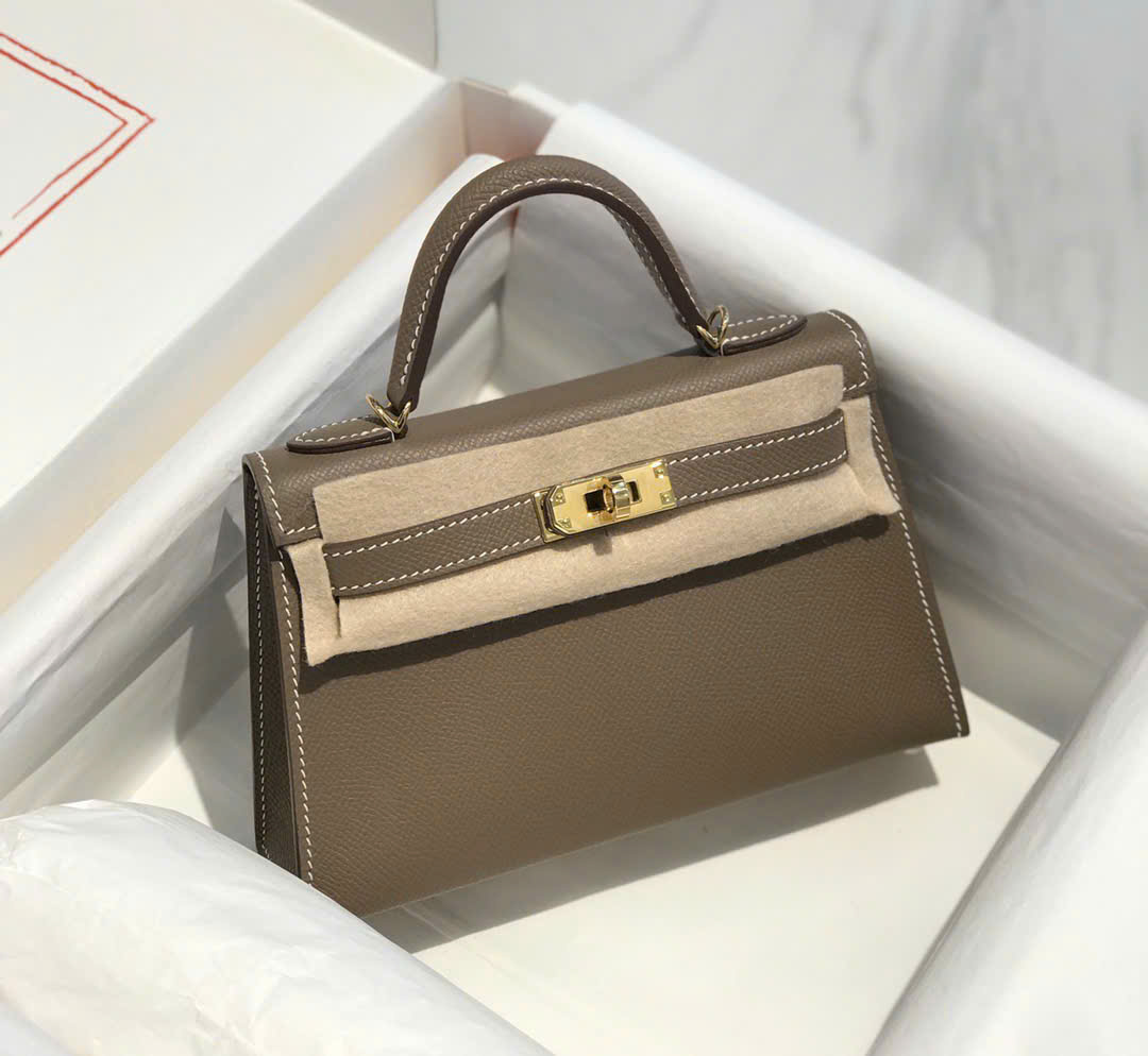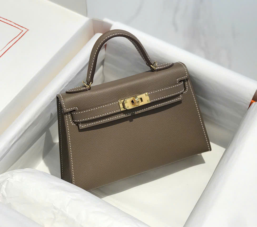 Túi xách Hermes Mini Kelly II Màu Xám Voi Khóa Vàng Da Epsom Siêu VIP