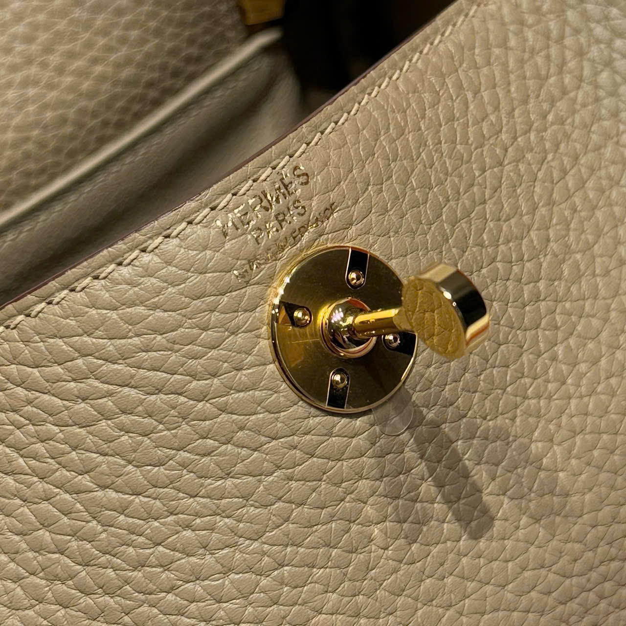 - Tên Sản Phẩm: Túi xách Hermes Mini Lindy like auth – may tay 50% – màu kem nhạt