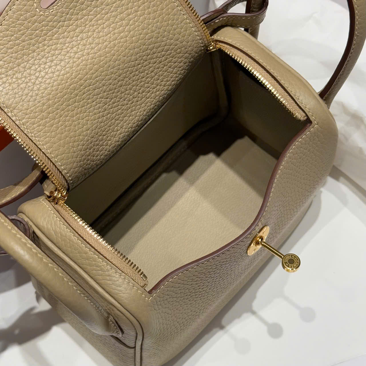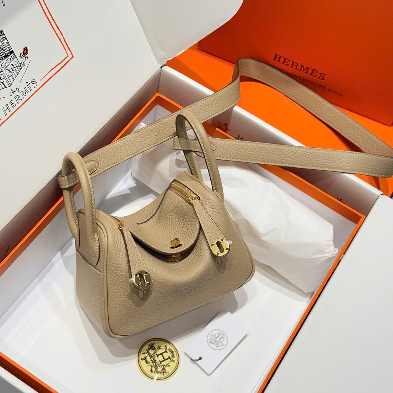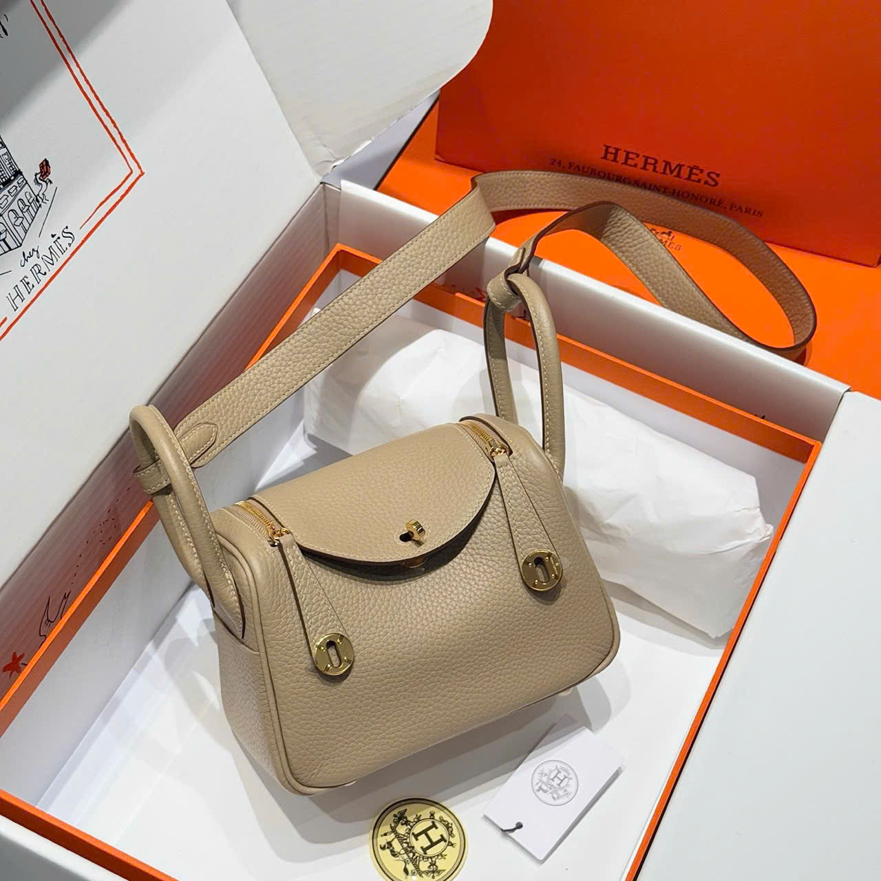 Túi xách Hermes Mini Lindy like auth – may tay 50% – màu kem nhạt