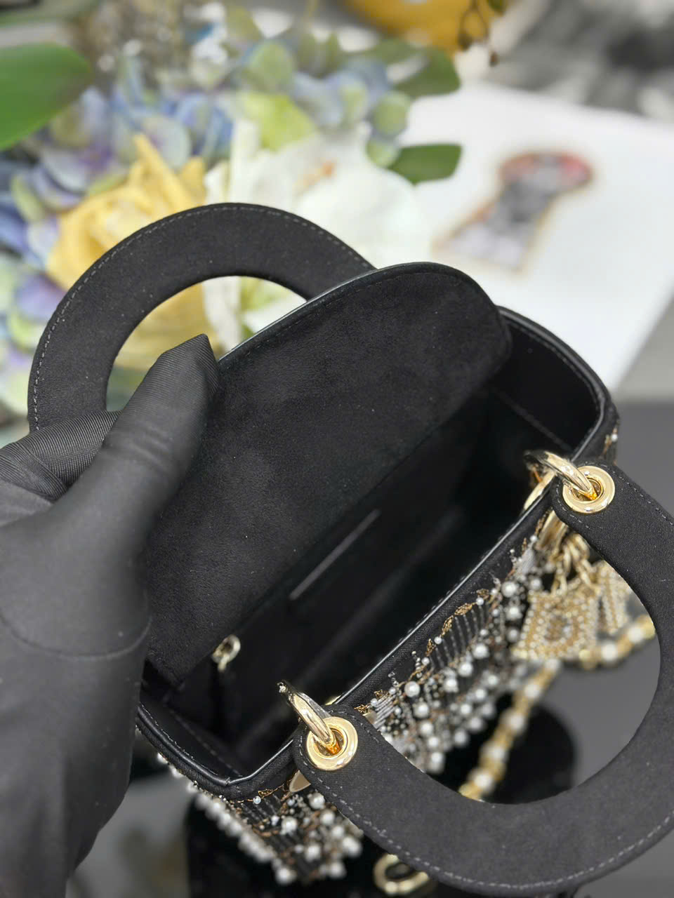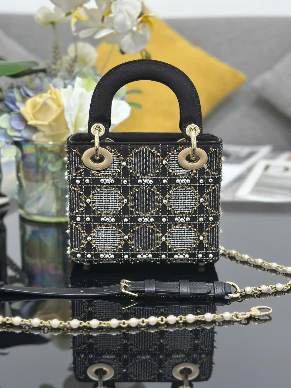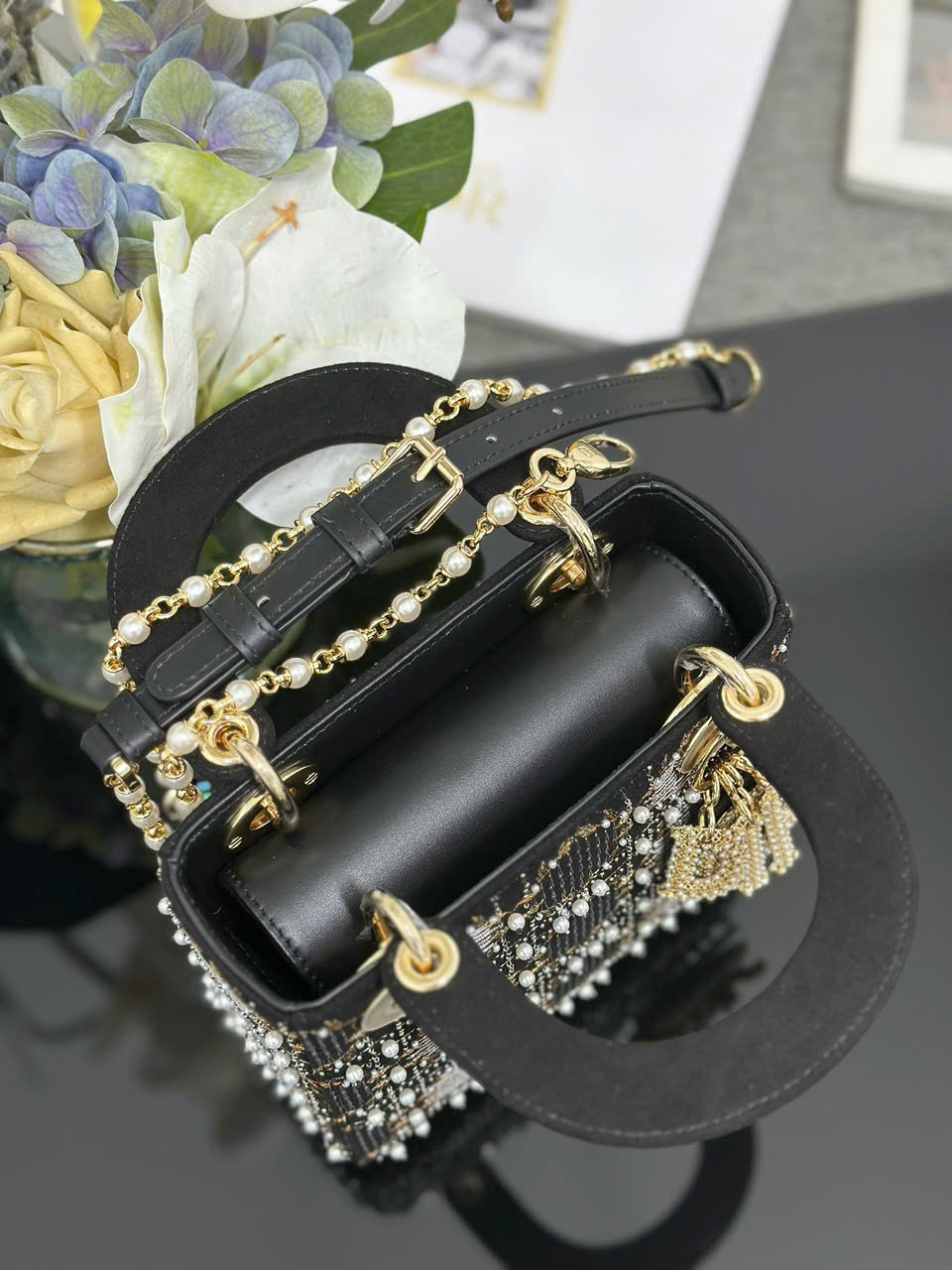 Túi xách Lady Dior siêu vip ba ngăn thêu ngọc trai