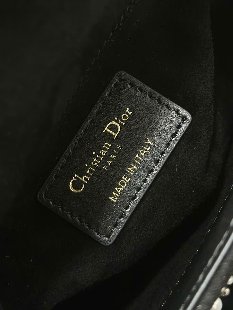 • Trang trí charm D.I.O.R. kim loại phủ resin ngọc trai, tạo điểm nhấn tinh tế