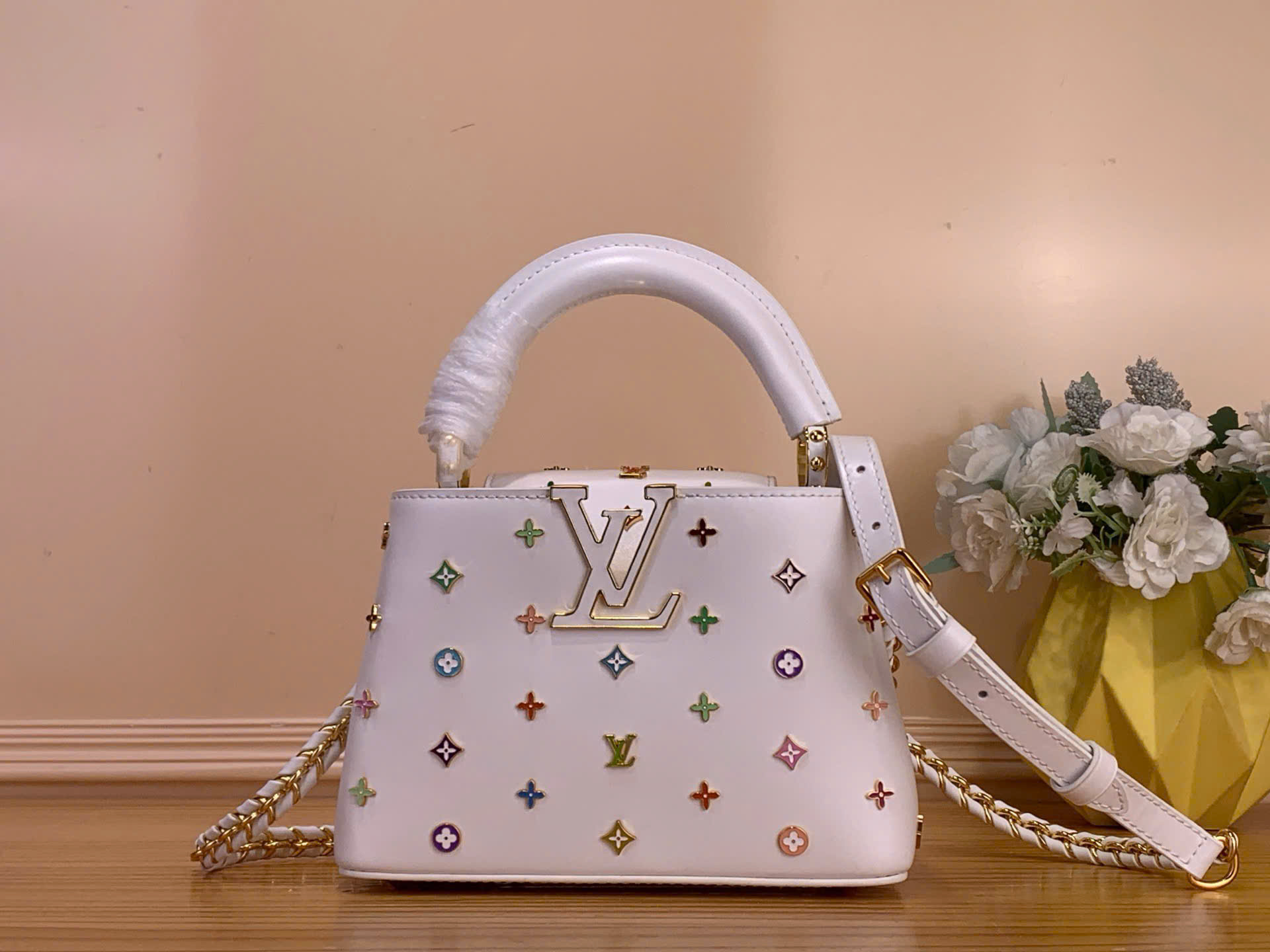 Tên sản phẩm: Túi Louis Vuitton Capucines Mini M27637 Trắng Multicolor Takashi Murakami Siêu VIP