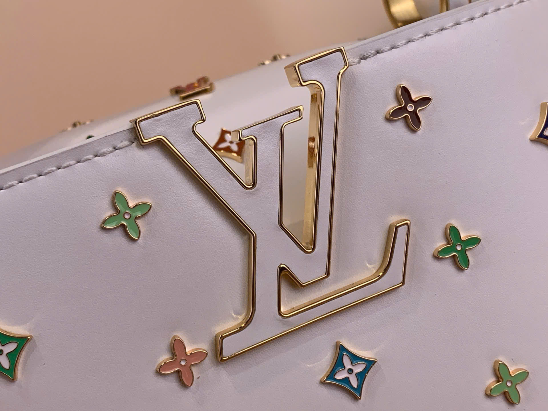 • Đinh hoa LV men màu, tạo điểm nhấn độc đáo.