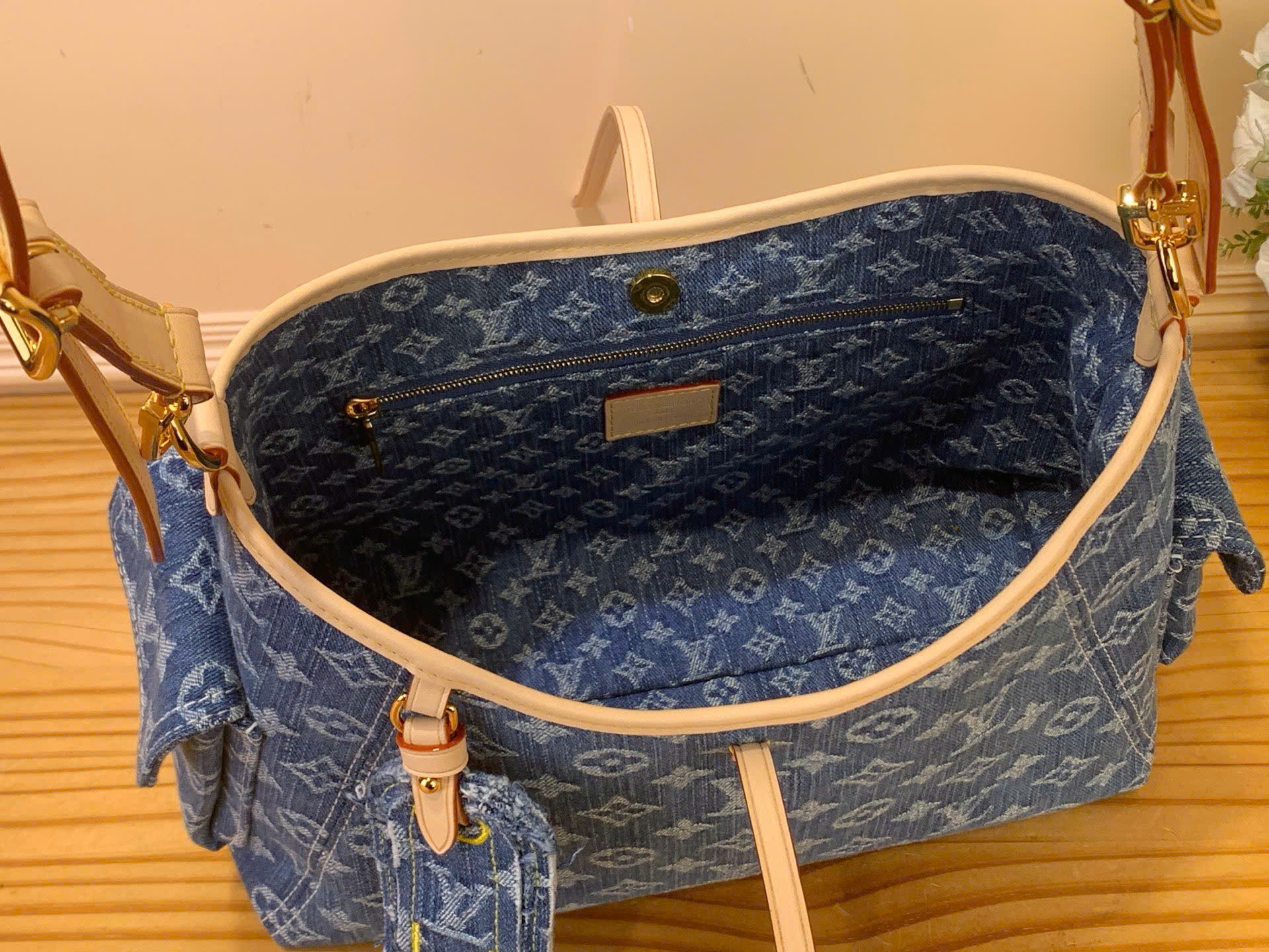 • Thiết kế Carryall Cargo thuộc Denim Rendez-Vous phong cách trẻ trung hiện đại. • Chất liệu denim (vải bò) cao cấp, bền đẹp và cá tính. • Phối viền da màu tương phản, tạo điểm nhấn nổi bật. • Chi tiết dây rút thời trang, tăng vẻ năng động. • Phụ kiện kim loại cao cấp, tinh xảo sang trọng. • Tag logo đặc trưng, nhận diện thương hiệu tinh tế. • Dung tích rộng, đựng được nhiều vật dụng hằng ngày. • Có thể xách tay, đeo vai hoặc đeo chéo linh hoạt. • Phù hợp đi làm, đi chơi hoặc du lịch. • Phong cách luxury – casual – trẻ trung. • Phiên bản siêu VIP, hoàn thiện chi tiết sắc nét. • Mẫu túi hot trend, rất được yêu thích