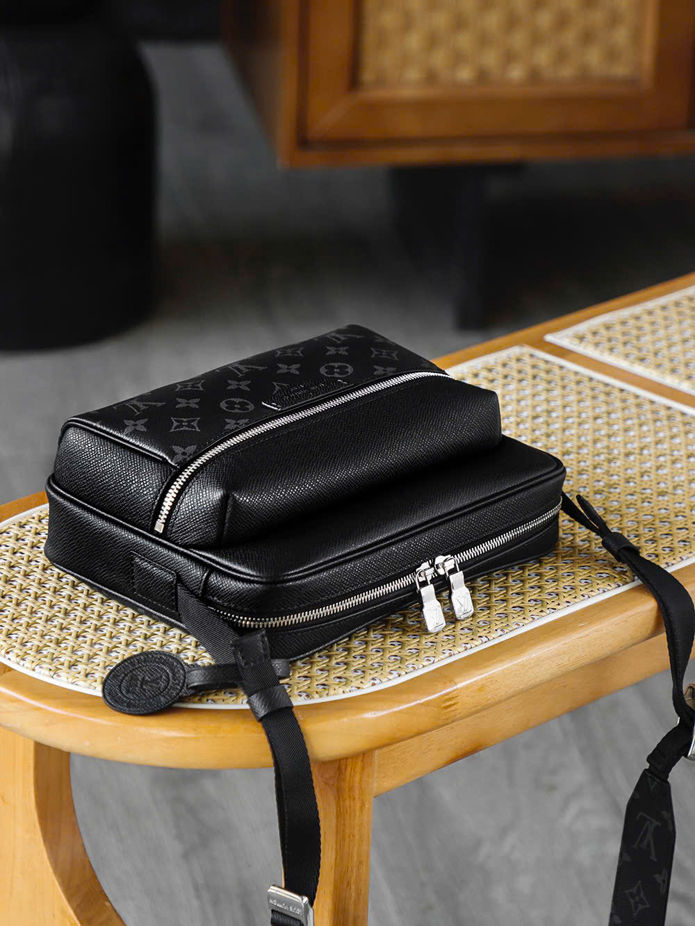 - Chất liệu canvas Monogram phủ tráng kết hợp viền da bò cao cấp, vừa bền vừa sang