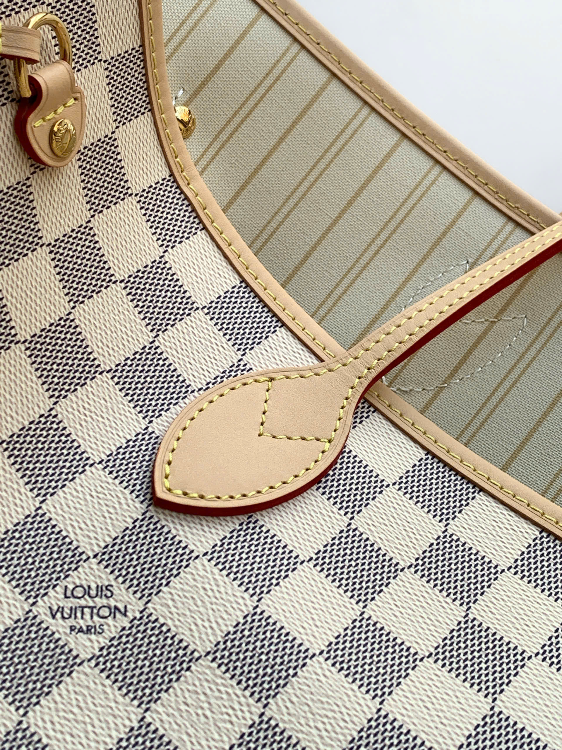 • Lót vải sọc nhiều màu, mang phong cách đặc trưng của dòng Neverfull.