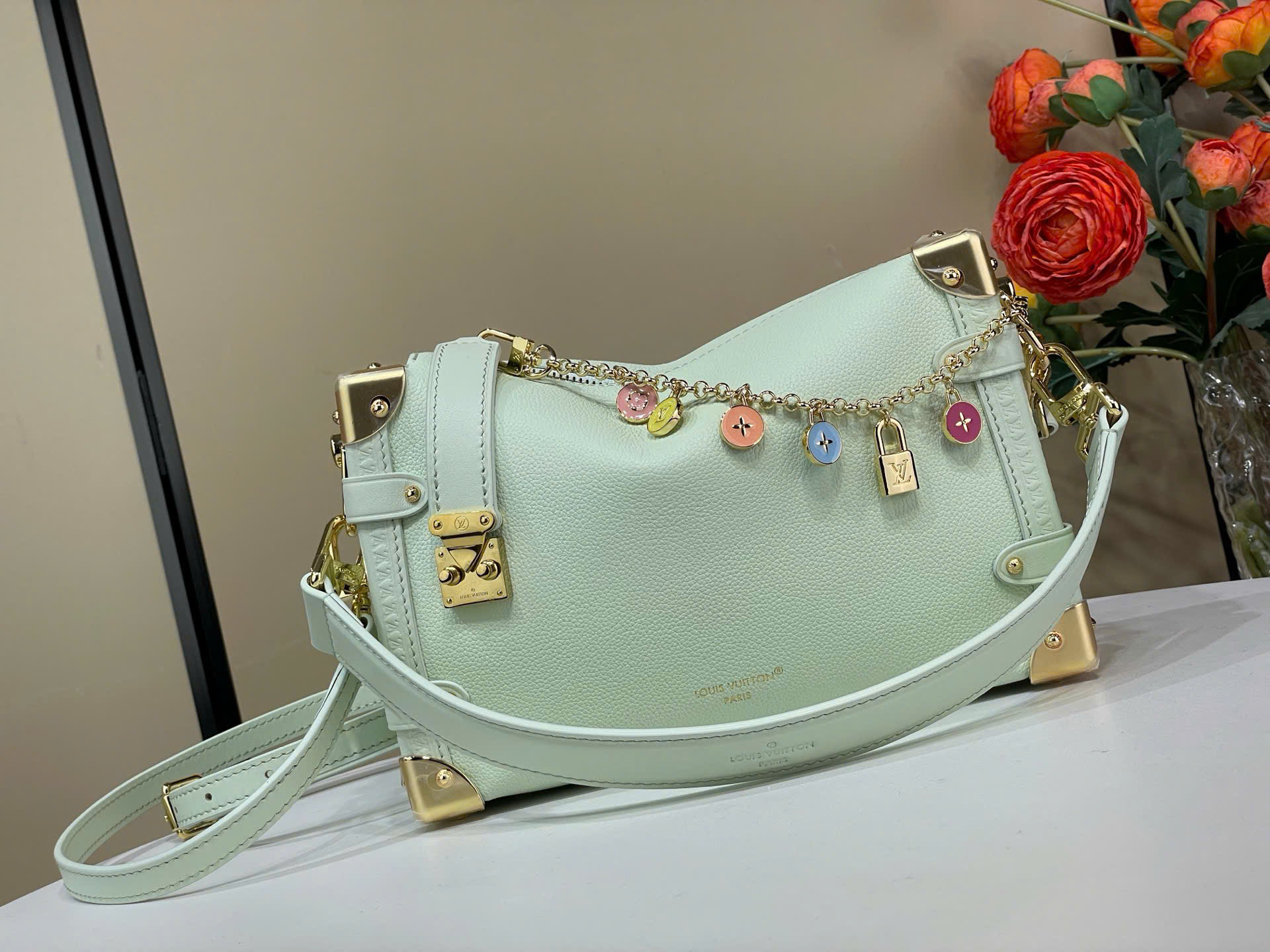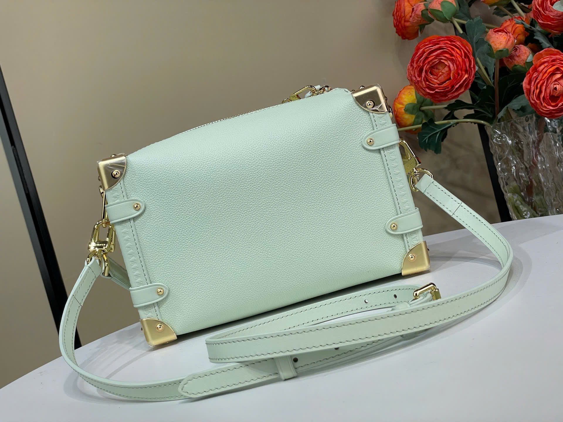 • Thiết kế Side Trunk lấy cảm hứng từ rương LV cổ điển, sang trọng và cá tính. • Chất liệu da bò cao cấp, phối viền da tinh tế. • Tông màu xanh nhạt nổi bật, thời trang và trẻ trung. • Chi tiết góc kim loại + khóa S-lock, chuẩn phong cách trunk đặc trưng. • Dây xích trang trí nổi bật, tạo điểm nhấn thu hút ánh nhìn. • Dây đeo tháo rời + tay cầm, linh hoạt xách tay, đeo vai hoặc đeo chéo. • Ngăn chứa tiện dụng, đựng điện thoại, ví và đồ cá nhân. • Phù hợp đi chơi, dạo phố hoặc dự tiệc. • Phong cách luxury – cá tính – thời thượng. • Form túi cứng cáp, giữ dáng cực đẹp. • Phiên bản siêu VIP, hoàn thiện chi tiết sắc nét. • Kèm full box và phụ kiện đầy đủ khi giao hàng