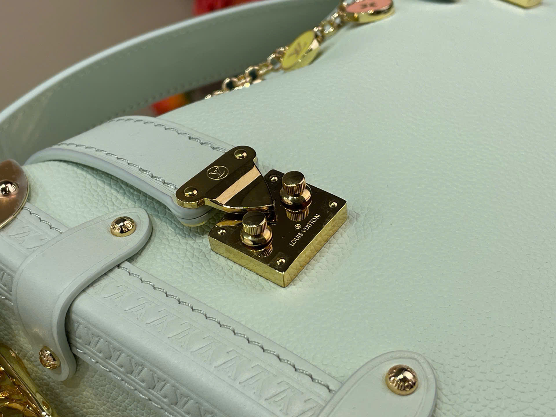 Túi xách Louis Vuitton Side Trunk Medium Siêu VIP Màu Xanh Nhạt Kèm Xích