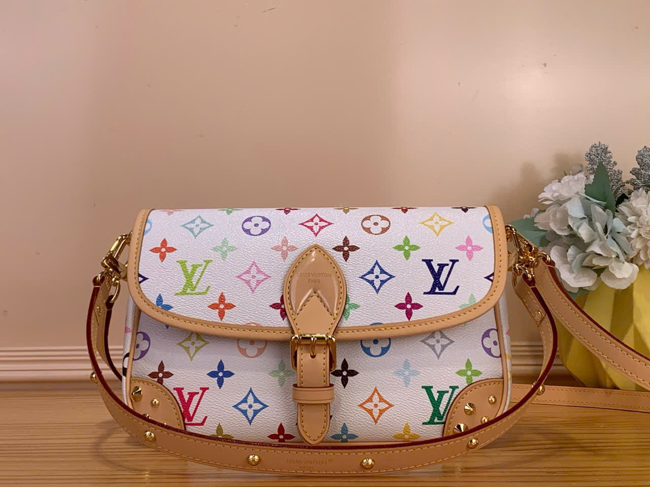 Túi xách Louis Vuitton siêu vip DIANE Murakami M27866 trắng đa sắc