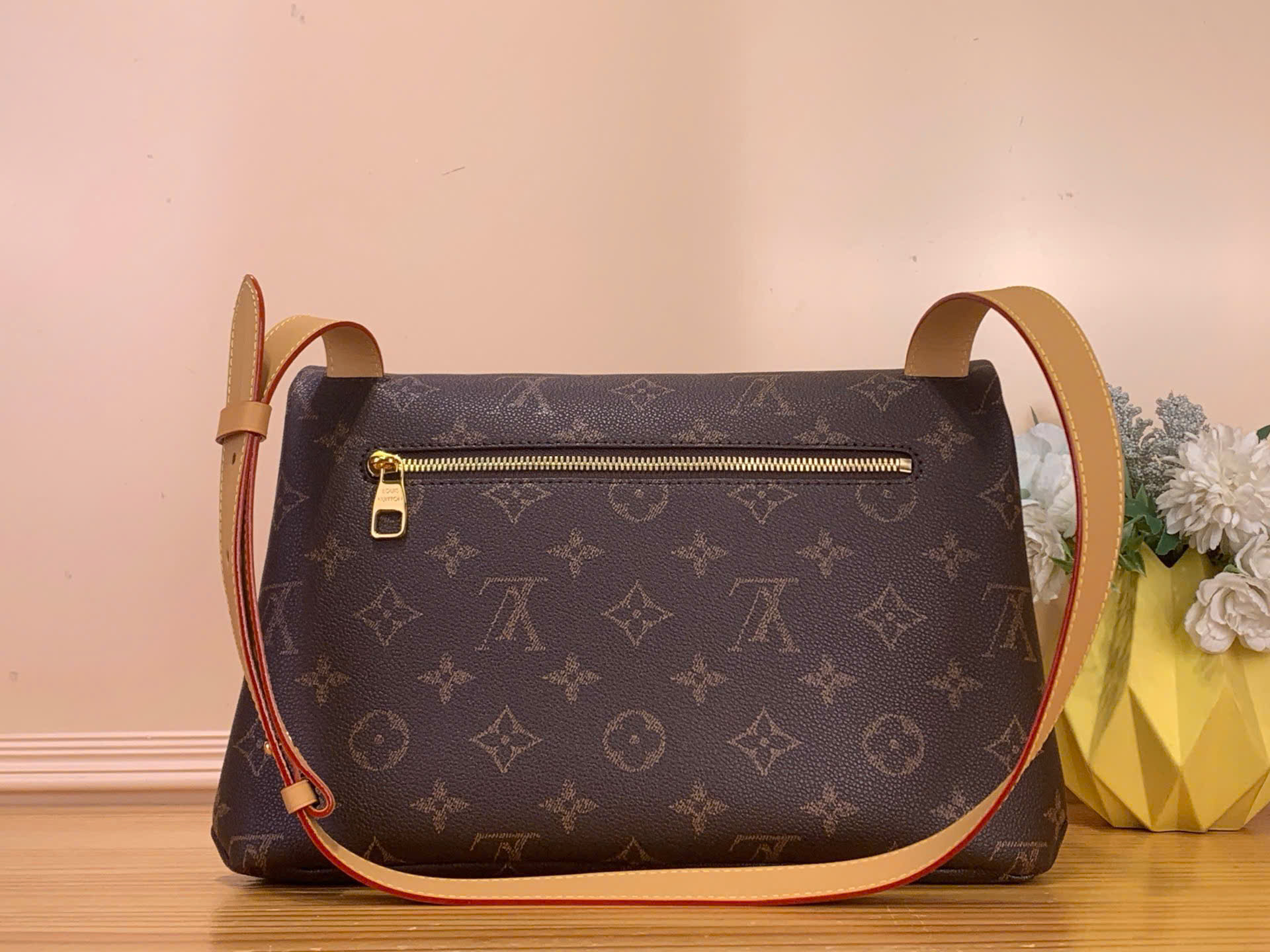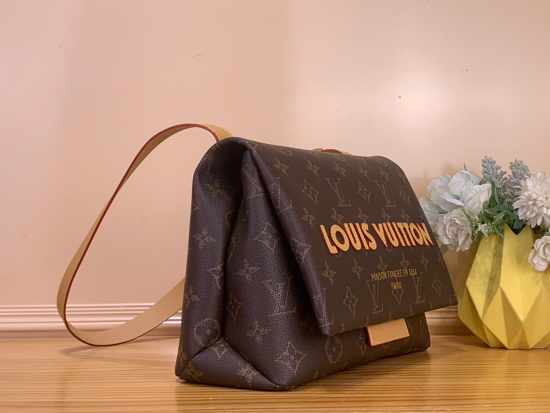 • Thiết kế Take Out Messenger thuộc bộ sưu tập LV Packaging độc đáo. • Chất liệu da bò cao cấp in họa tiết Monogram đặc trưng của Louis Vuitton. • Mặt trước nổi bật với logo LOUIS VUITTON thêu lớn, tạo điểm nhấn thời trang. • Nắp gập tiện lợi với chi tiết dây da cùng màu với dây đeo. • Dây đeo dài điều chỉnh được, giúp đeo chéo hoặc đeo vai thoải mái. • Da mềm cao cấp, mang lại cảm giác đeo nhẹ và êm. • Không gian bên trong rộng rãi, phù hợp đựng điện thoại, ví, iPad mini và vật dụng hằng ngày. • Phong cách trẻ trung, cá tính và rất dễ phối đồ.