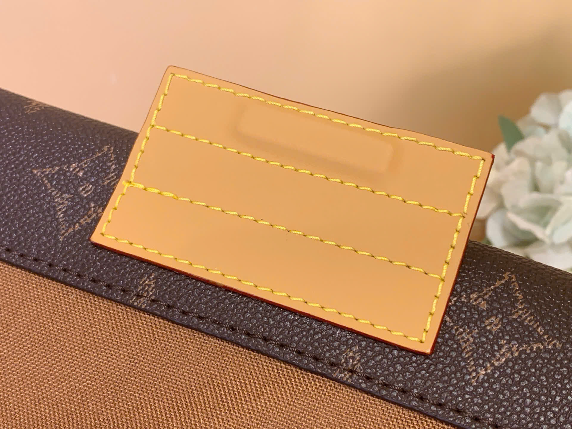 - Chất liệu da bò cao cấp in họa tiết Monogram đặc trưng của Louis Vuitton.