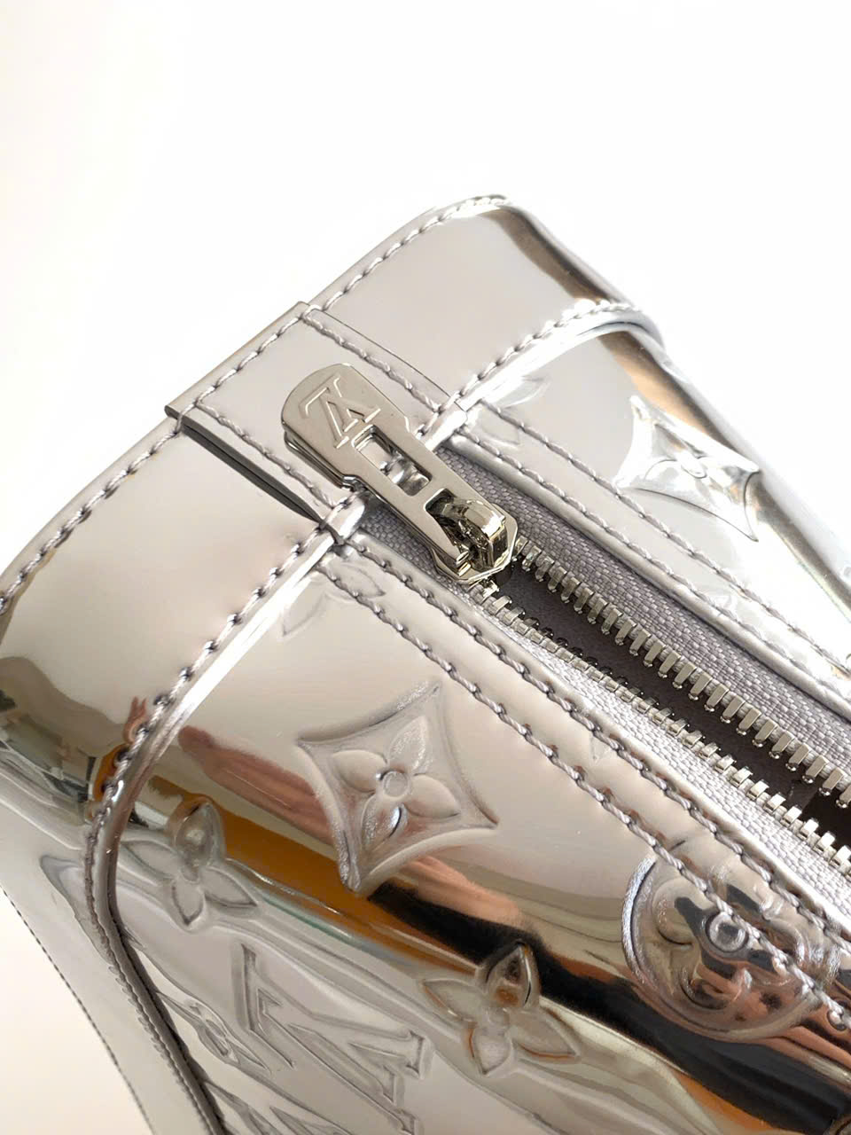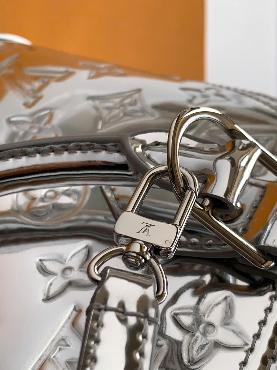 • Chất liệu Monogram Miroir canvas ánh bạc, nổi bật dưới ánh sáng