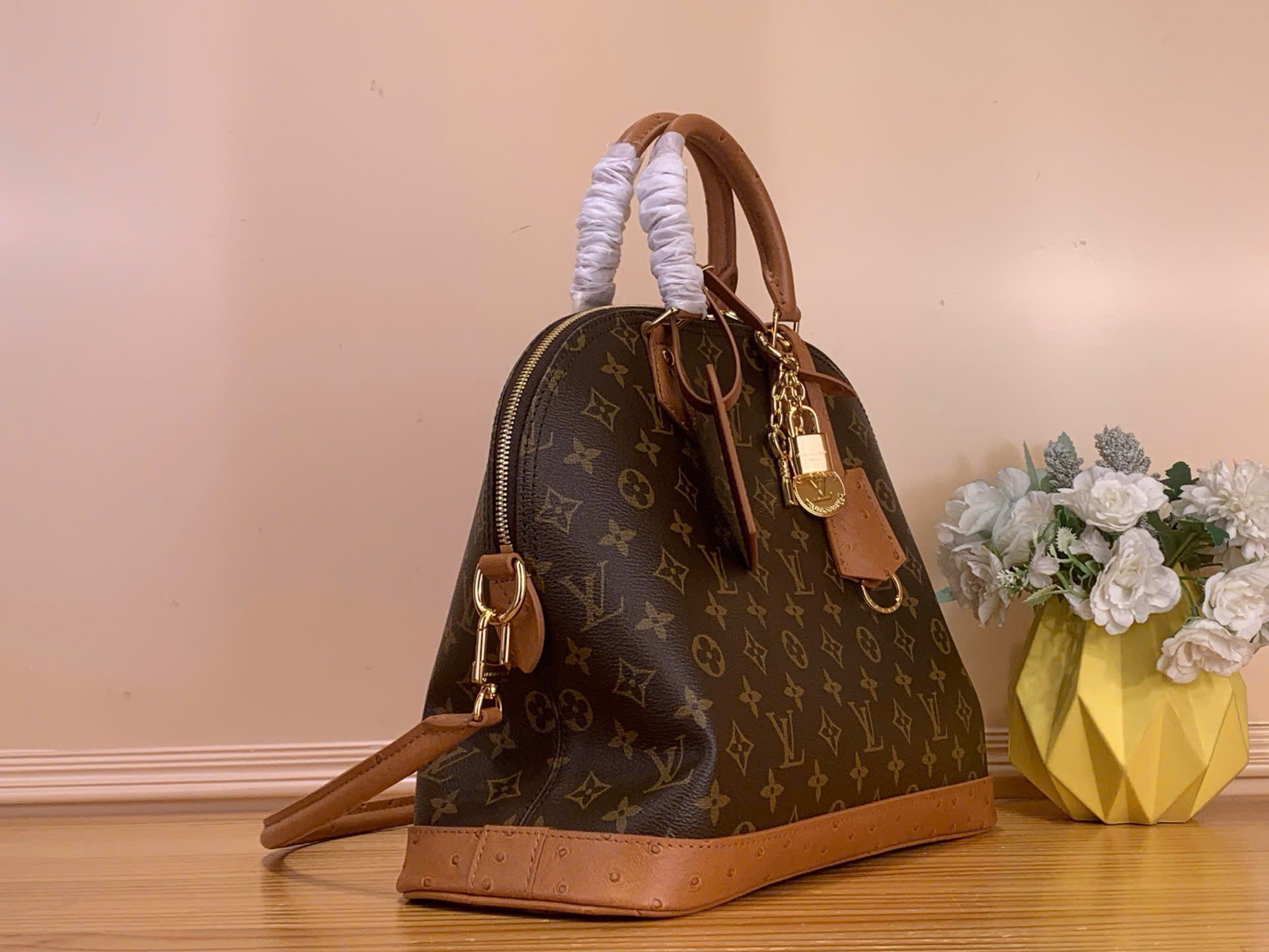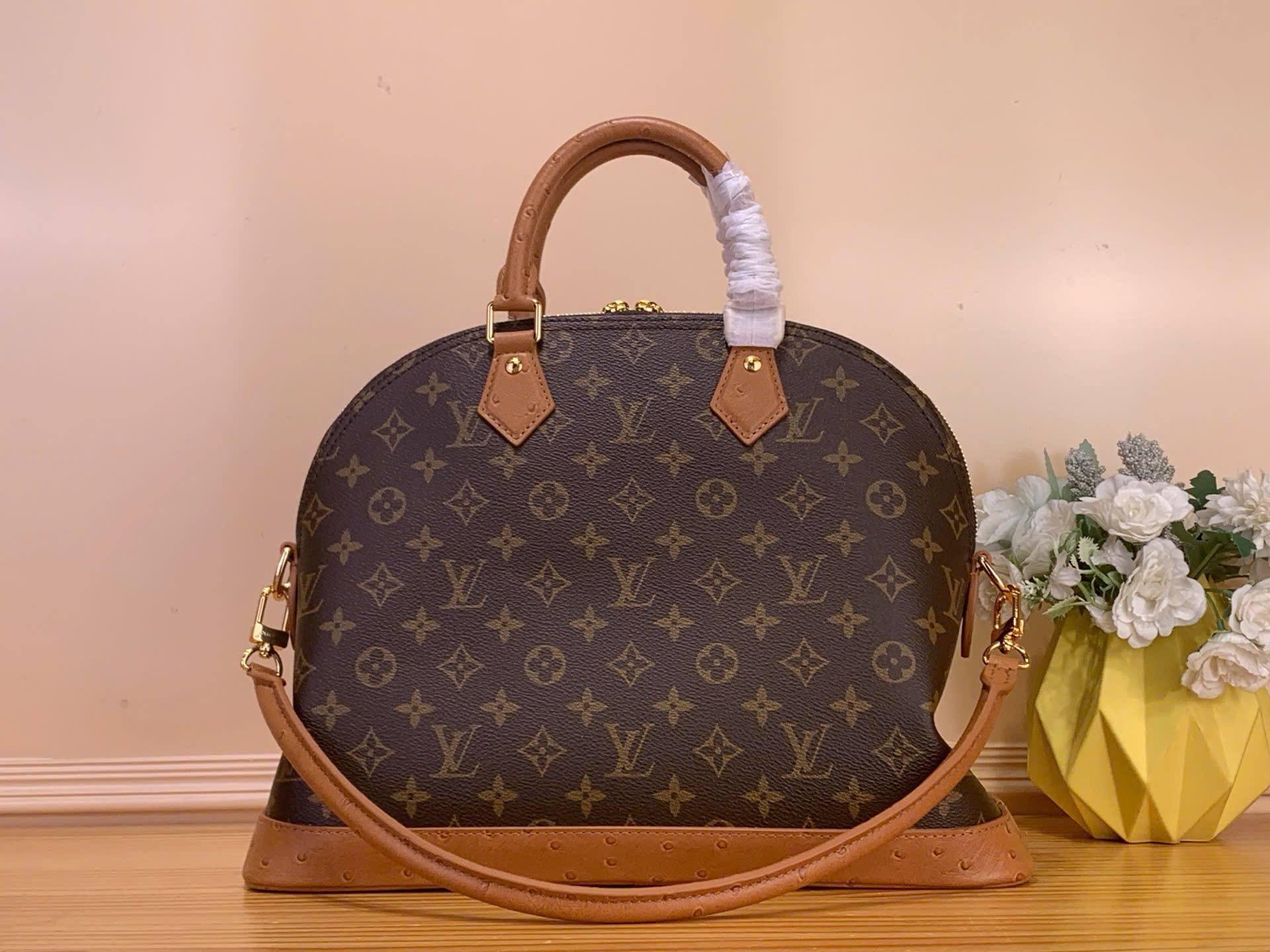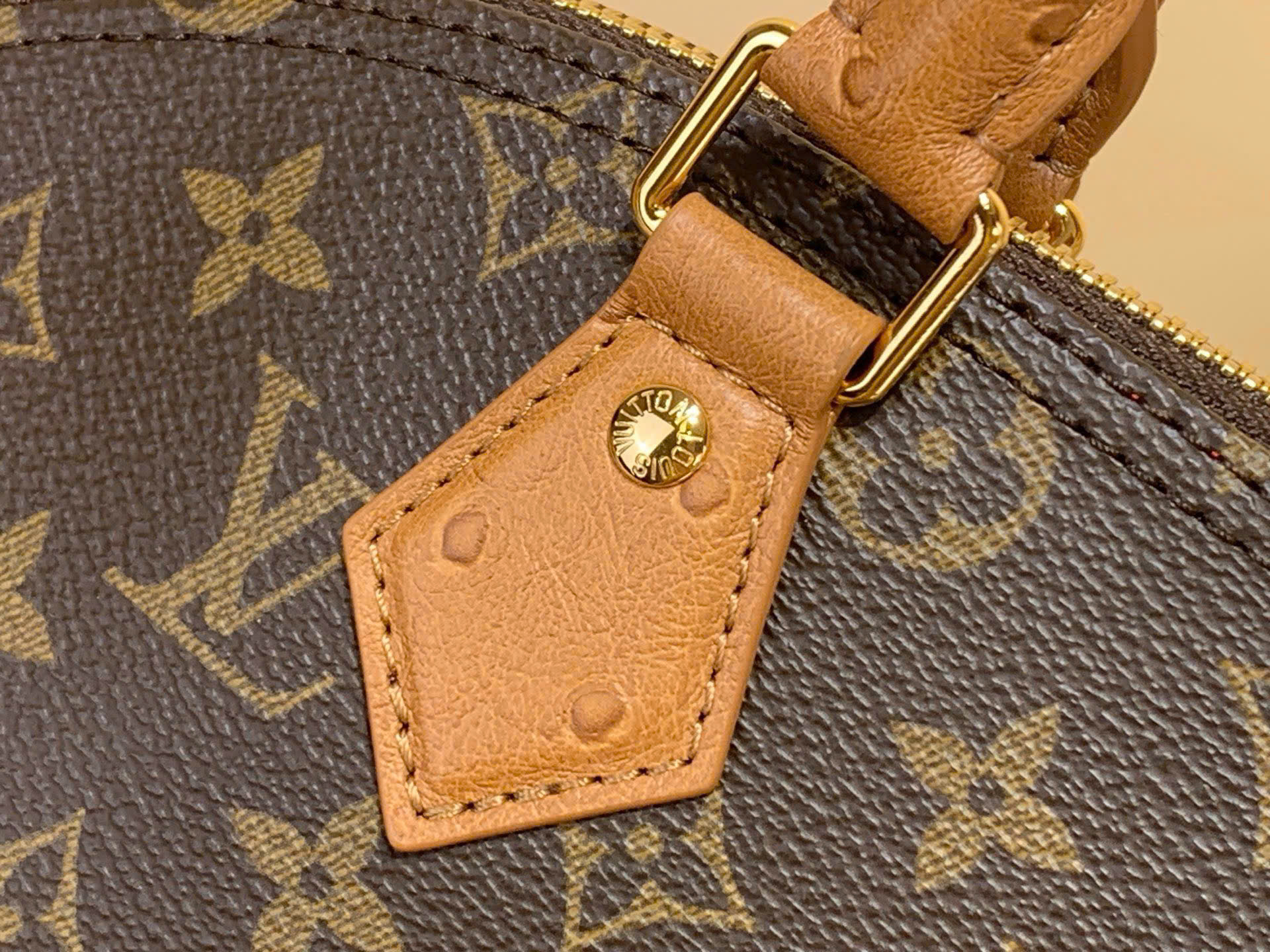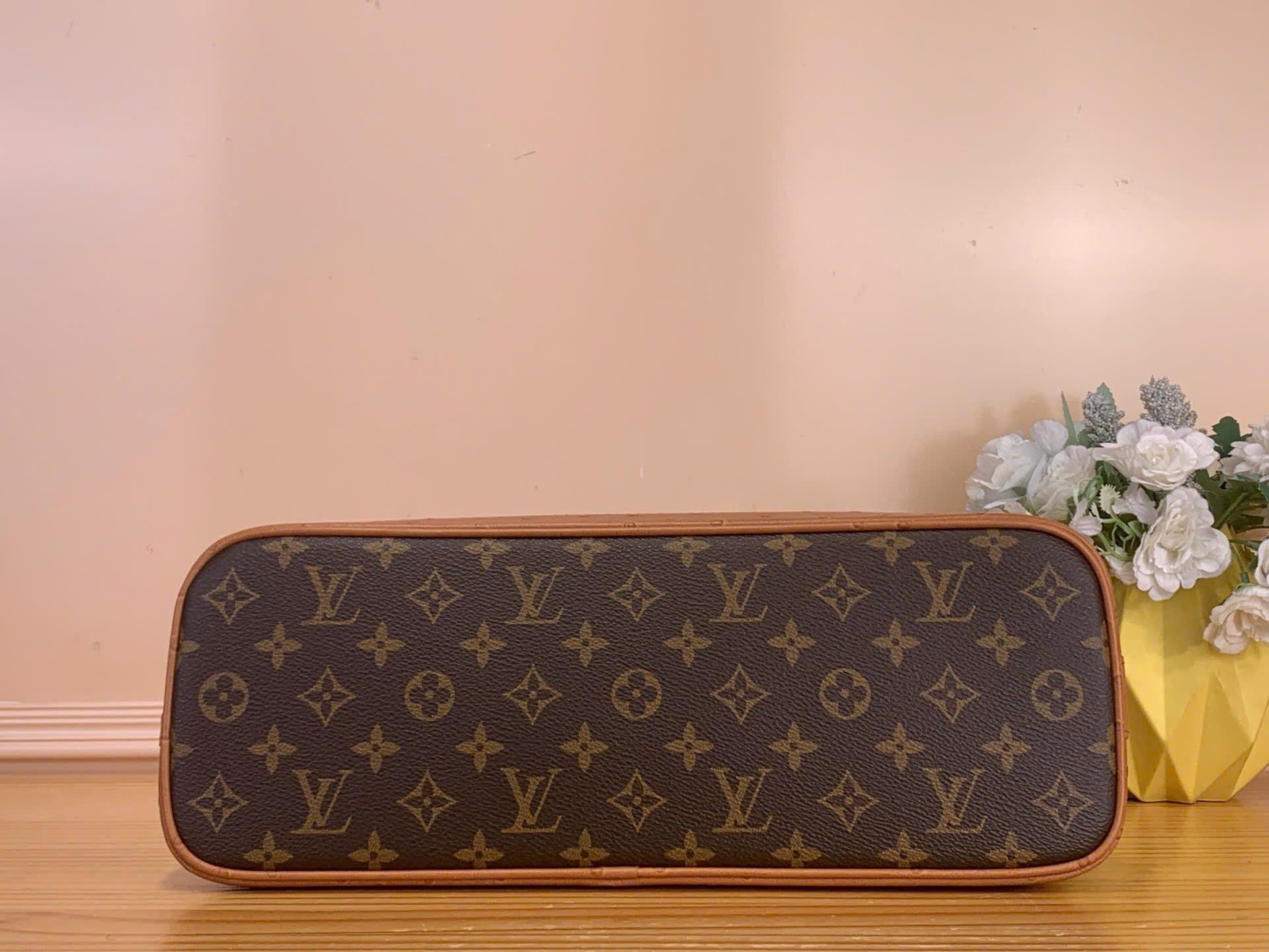 • Chất liệu canvas Monogram biểu tượng kết hợp viền da đà điểu cao cấp