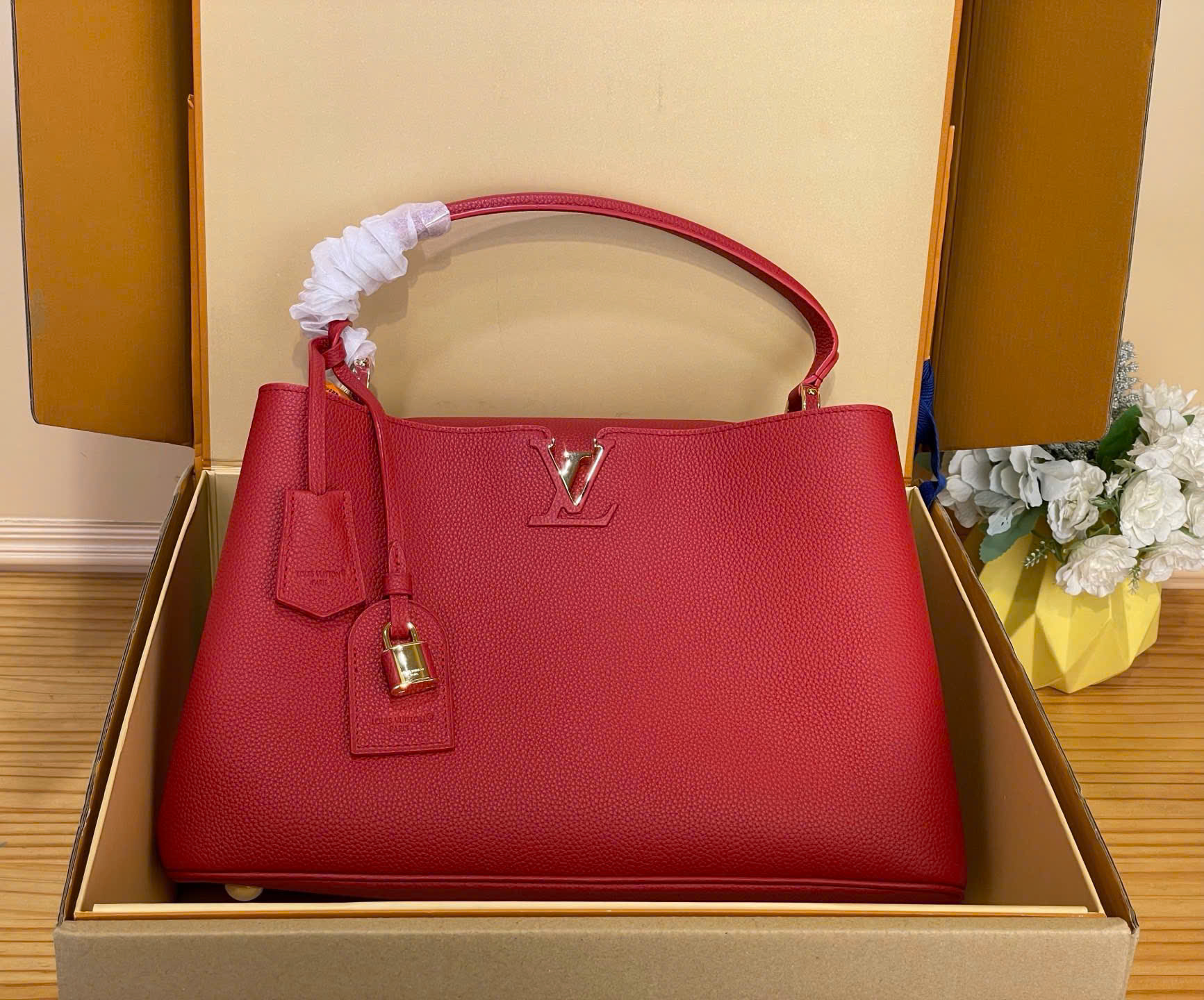 • Tên sản phẩm: Túi xách LV Capucines Large Taurillon Leather – M26319 – Đỏ – Siêu VIP