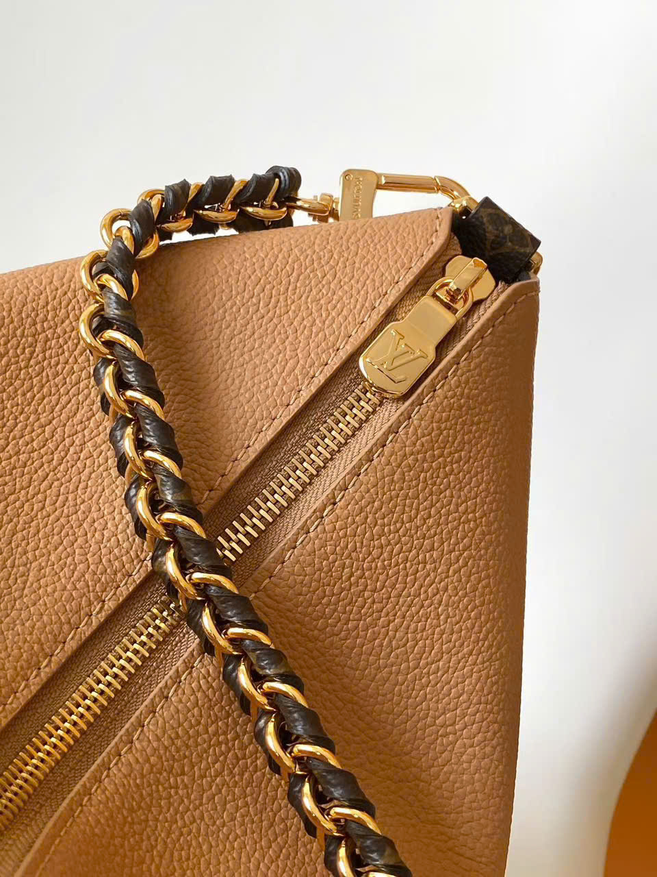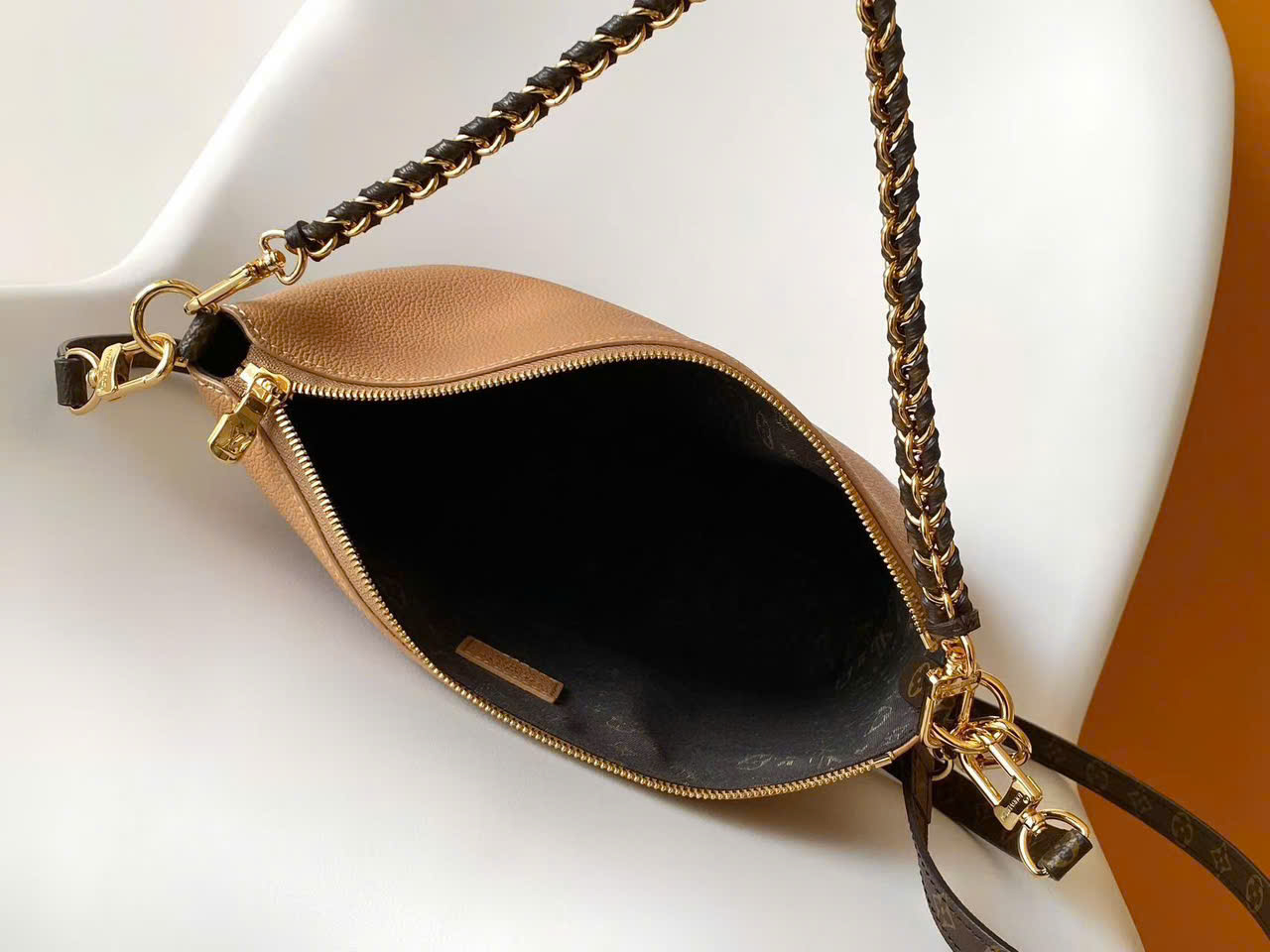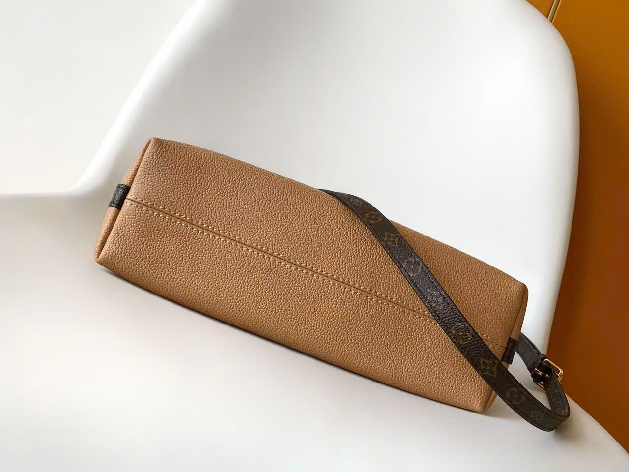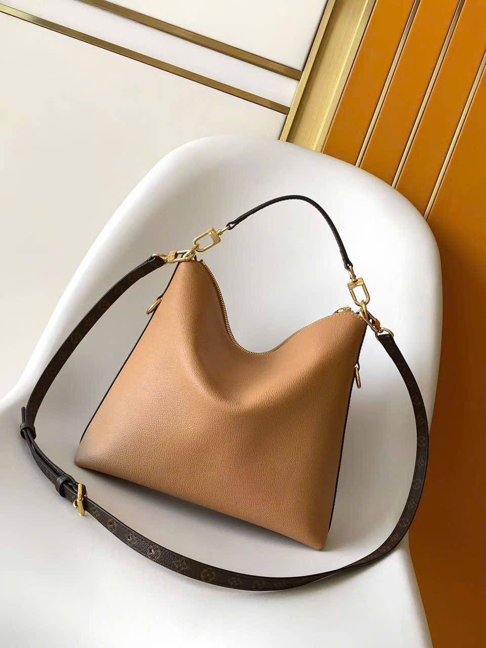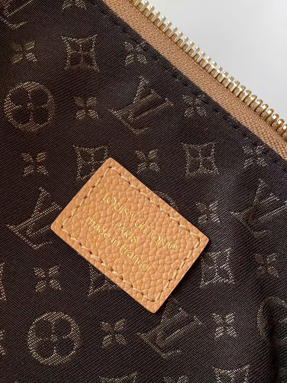 • Chất liệu Monogram canvas + da bò cao cấp, bền, form chuẩn
