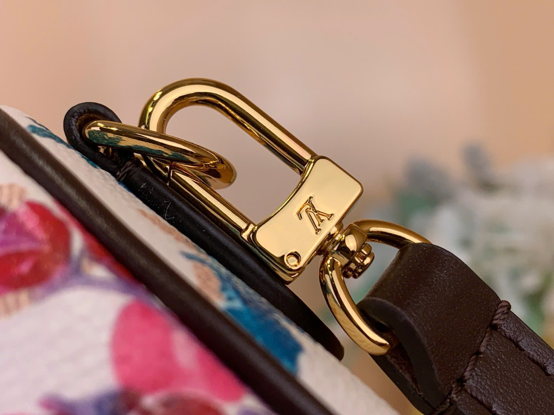 • Thuộc Monogram Eden Series, họa tiết động thực vật tươi sáng, chào mùa mới. • Chất liệu Monogram canvas kinh điển kết hợp tay cầm và dây đeo vai bằng da bò mềm mại. • Thiết kế nhỏ gọn, tiện dụng, phù hợp mang theo các vật dụng cá nhân hàng ngày. • Dây đeo vai có thể tháo rời, linh hoạt đeo vai hoặc cầm tay. • Không gian bên trong rộng rãi cho điện thoại, ví nhỏ và các vật dụng cần thiết.