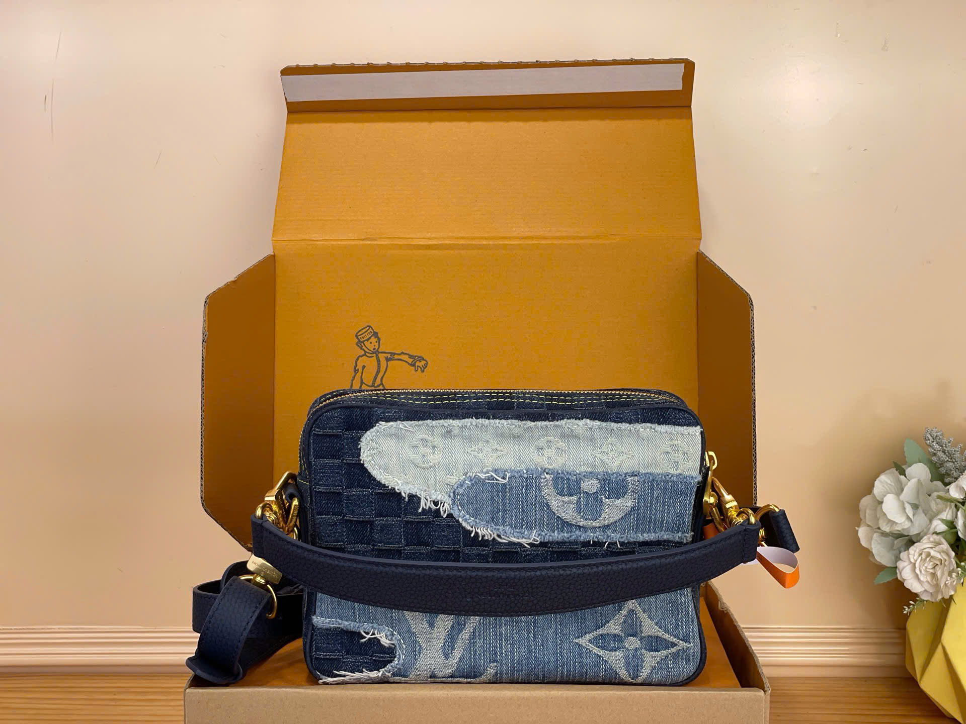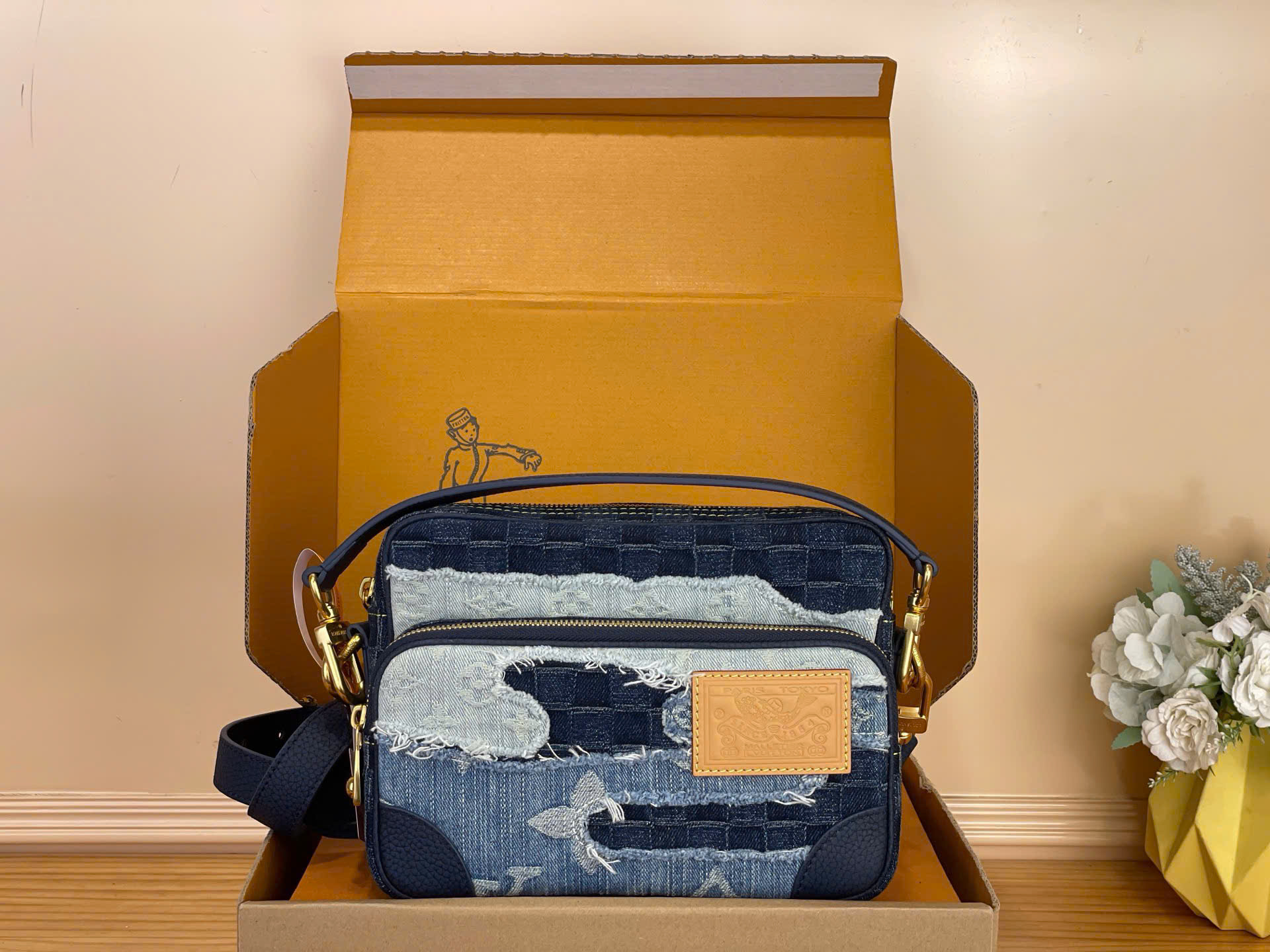• Họa tiết Damier caro kết hợp patch Monogram denim độc đáo.
