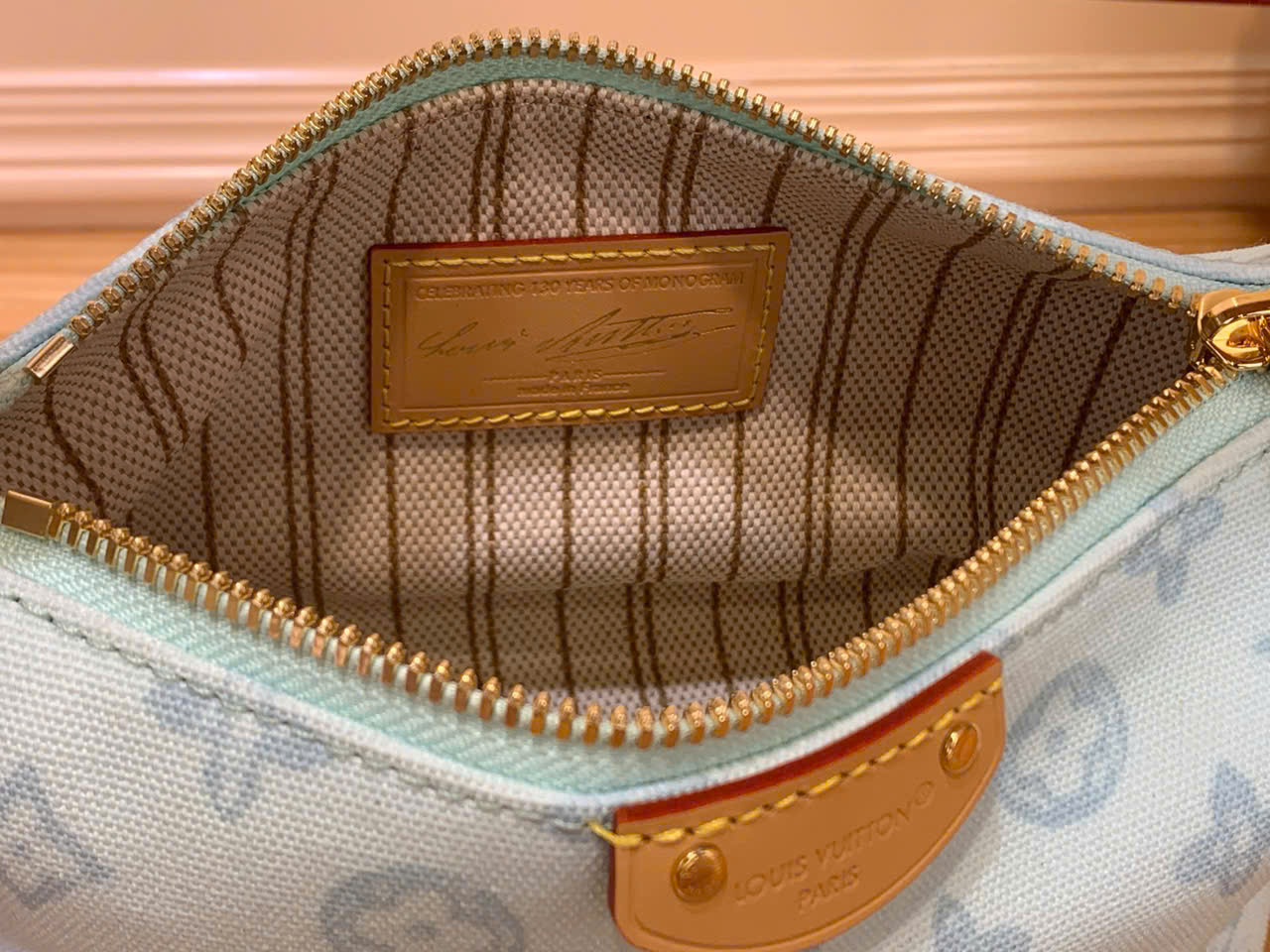 - Sử dụng chất liệu Monogram Origine hr canvas phối màu xanh nhạt – đa sắc, mang phong cách trẻ trung và sang trọng